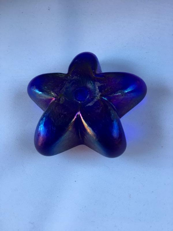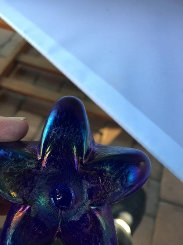 Both items are in VG conditions and signed as state above. The Crystal measures 2" X 3.75" and the Rhag paperweight measures 3" X 3".