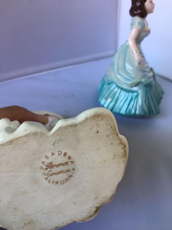 One is Made by Starlet Artware and signed by Lori (the green dress) and the other was made by Florence Ceramica. Both made in Pasadena, CA.