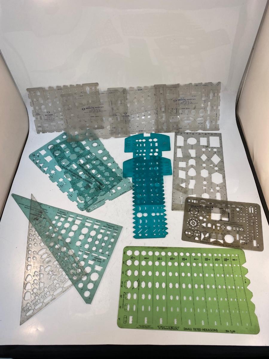 Vintage Lot of Various Nut Bolt Screw Templates Honeywell Hughes Aircraft SPS. Vintage drafting templates. Some are identical. In good used condition. See photos.