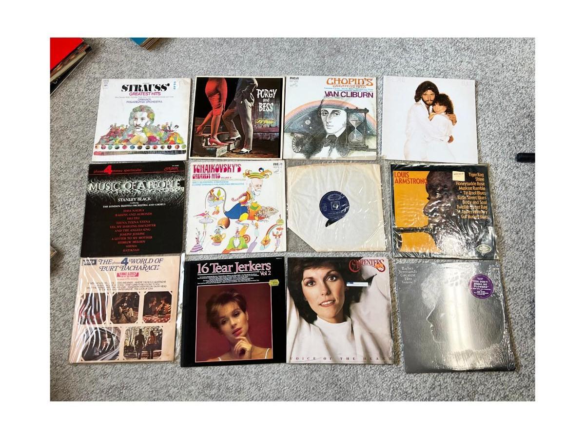 Vintage Lot of Various Records Carpenters, Strauss, Louis Armstrong & More