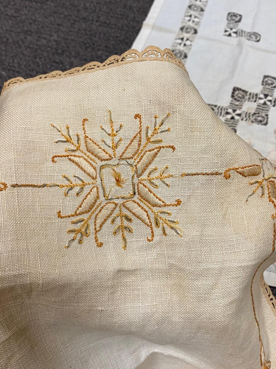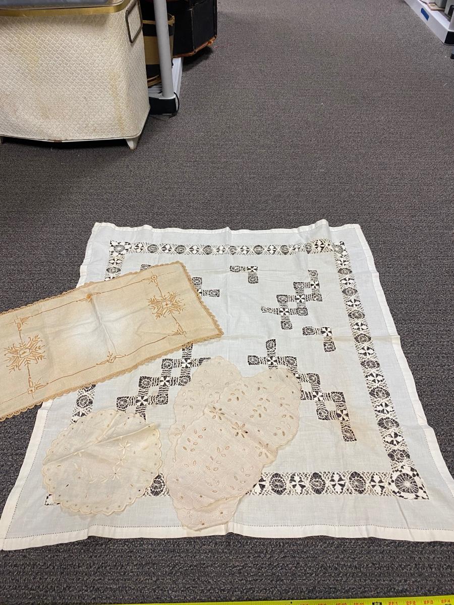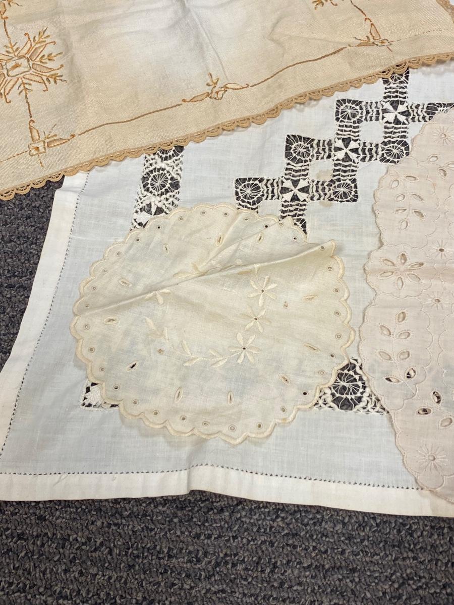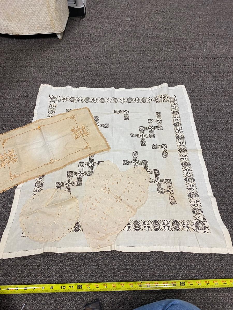 Vintage Lot of Various Table Linens. Spots and discolor from age. Different shapes and sizes.