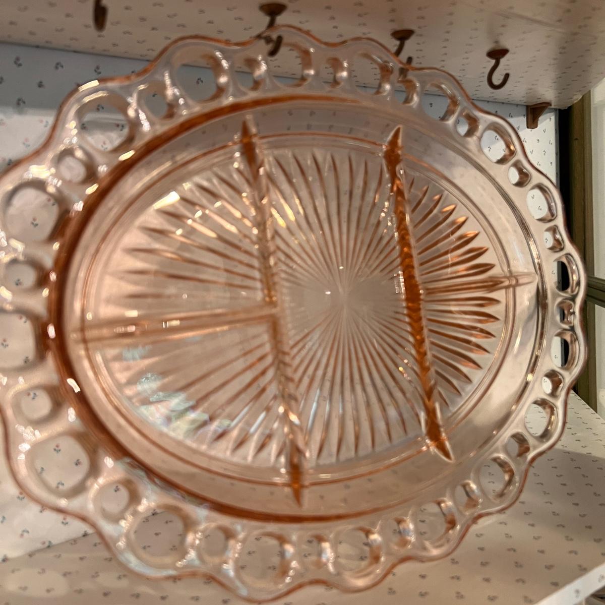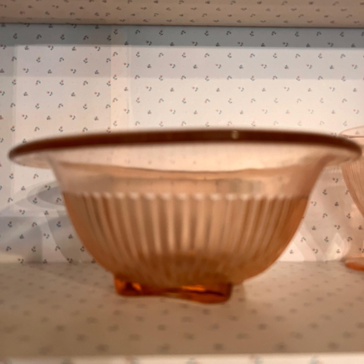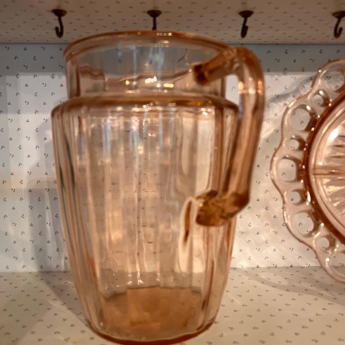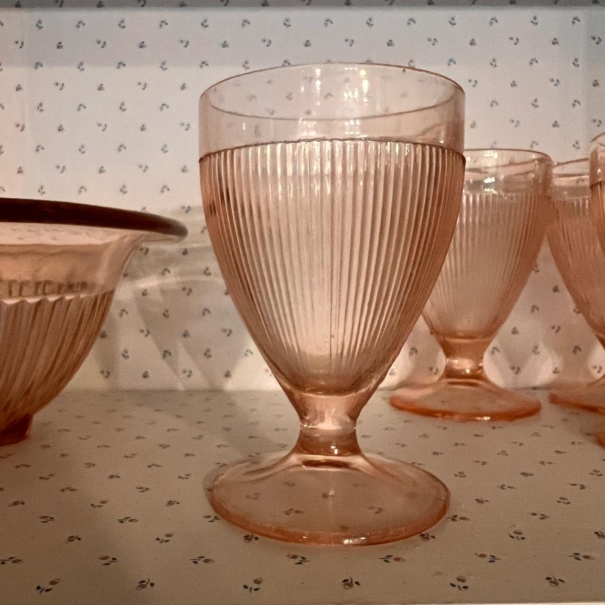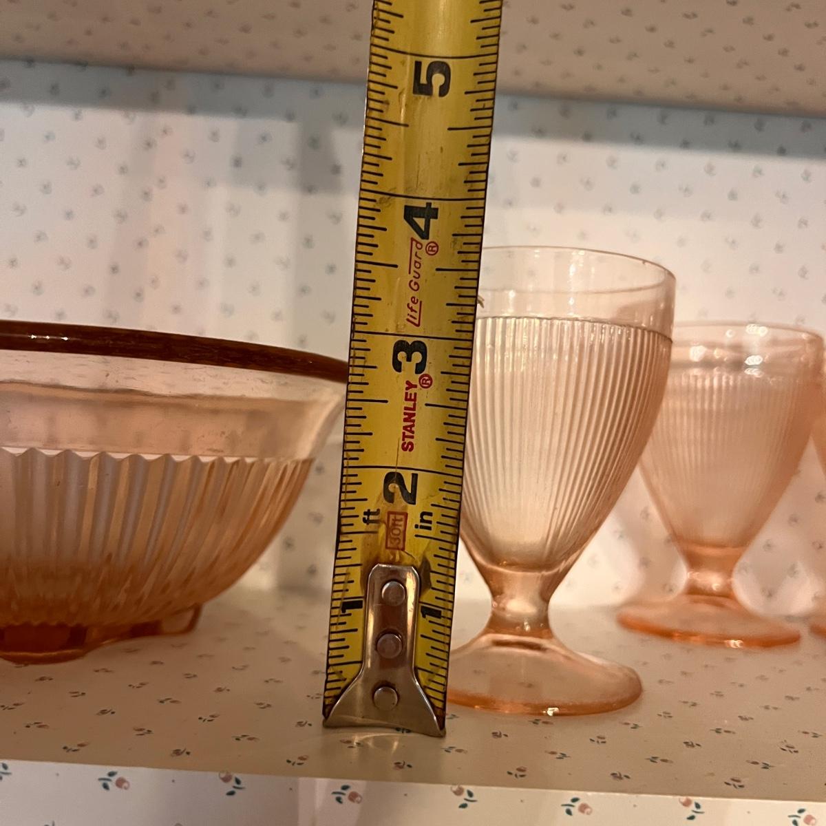 12 cups, 1 pitcher, 1 bowl and 1 separated platter plate. In excellent condition.