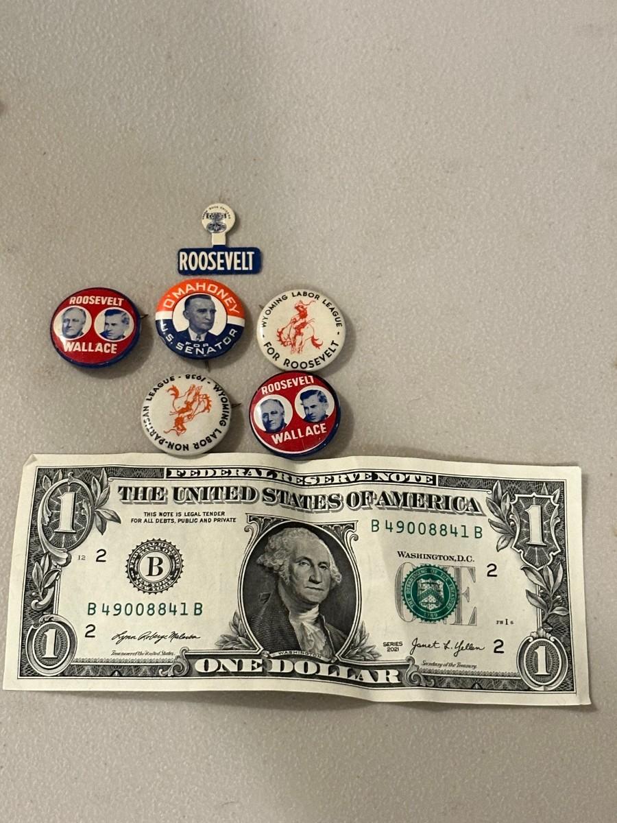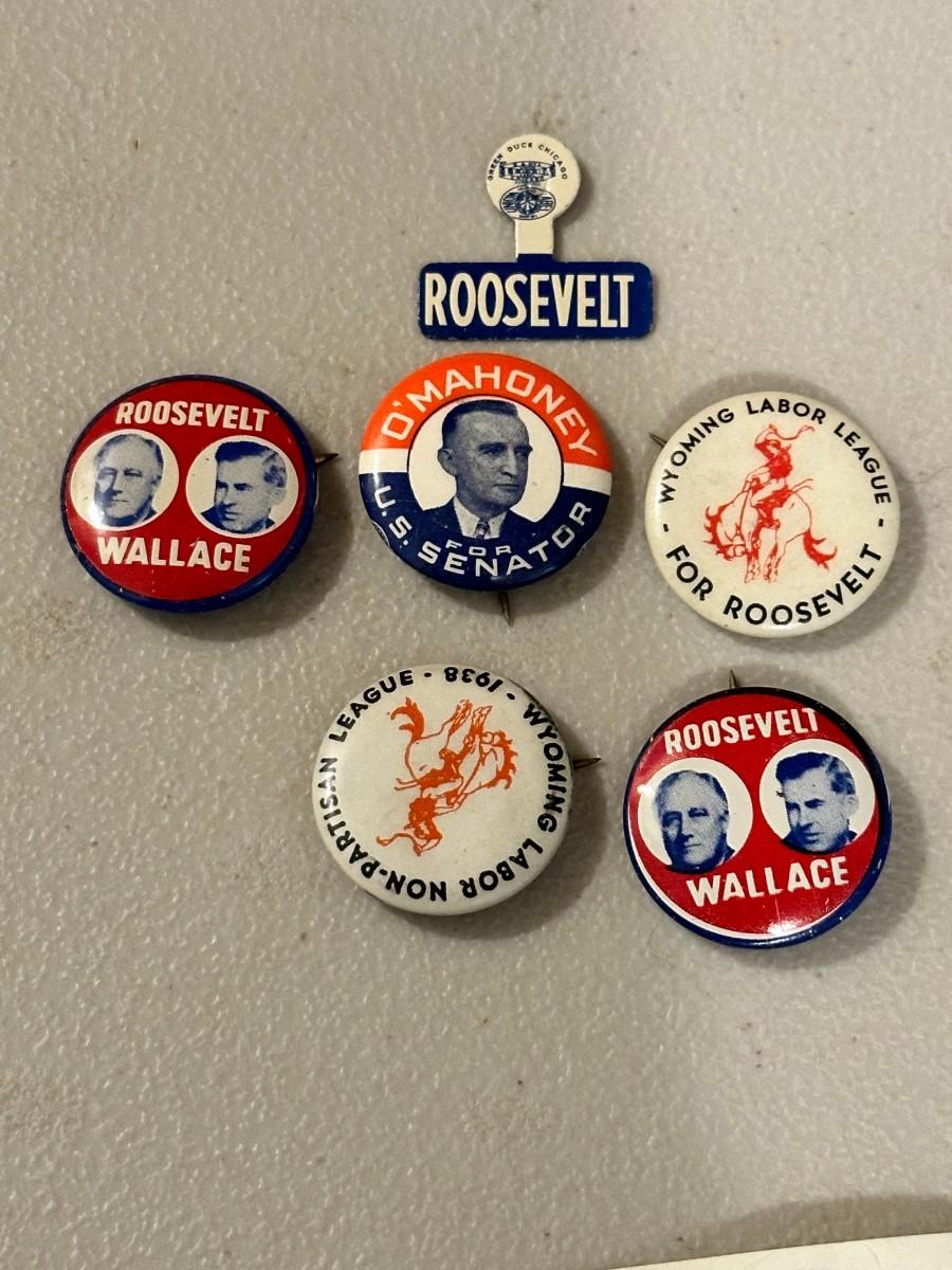 Vintage LOT Pins Pin Back Buttons ROOSEVELT Wallace