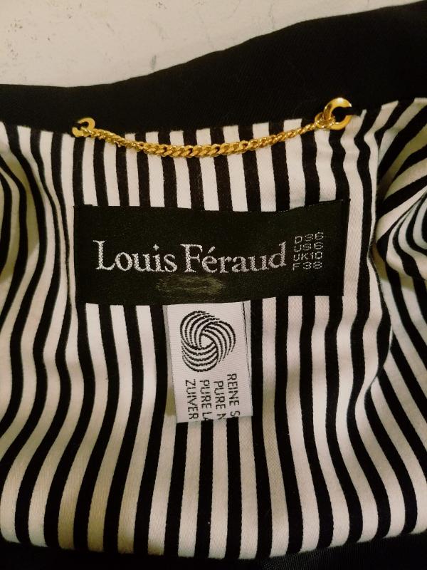 Stunning Louis Feraud Germany double breasted Jacket fully lined with the iconic signature all over and the gold chain. In very good to great vintage condition. Us size 6