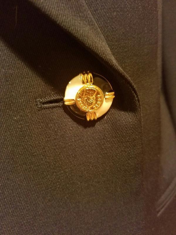 Stunning Louis Feraud Germany double breasted Jacket fully lined with the iconic signature all over and the gold chain. In very good to great vintage condition. Us size 6
