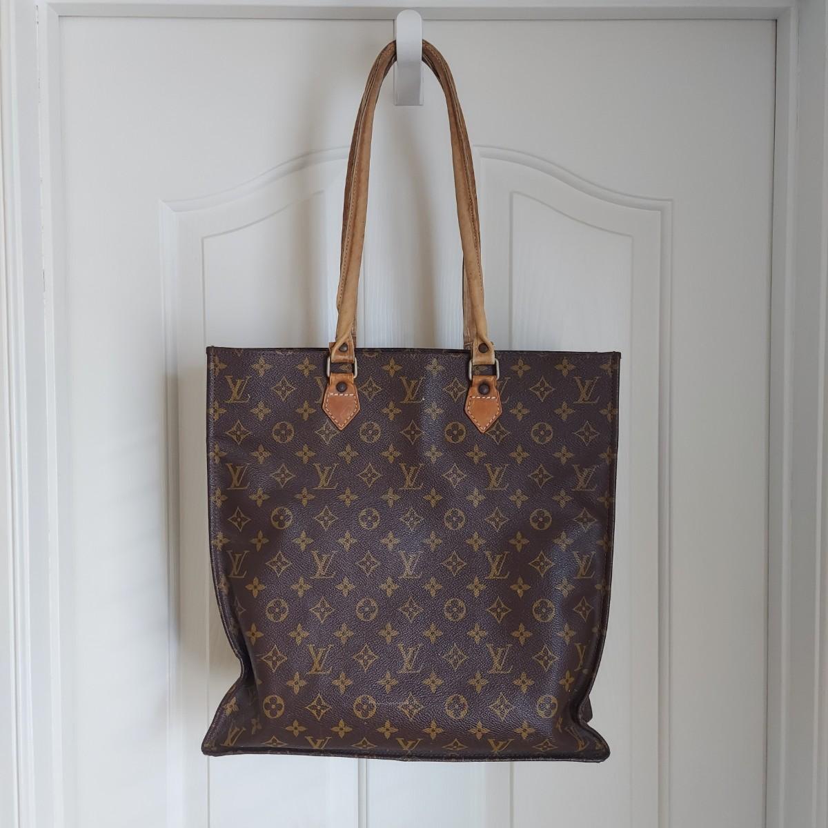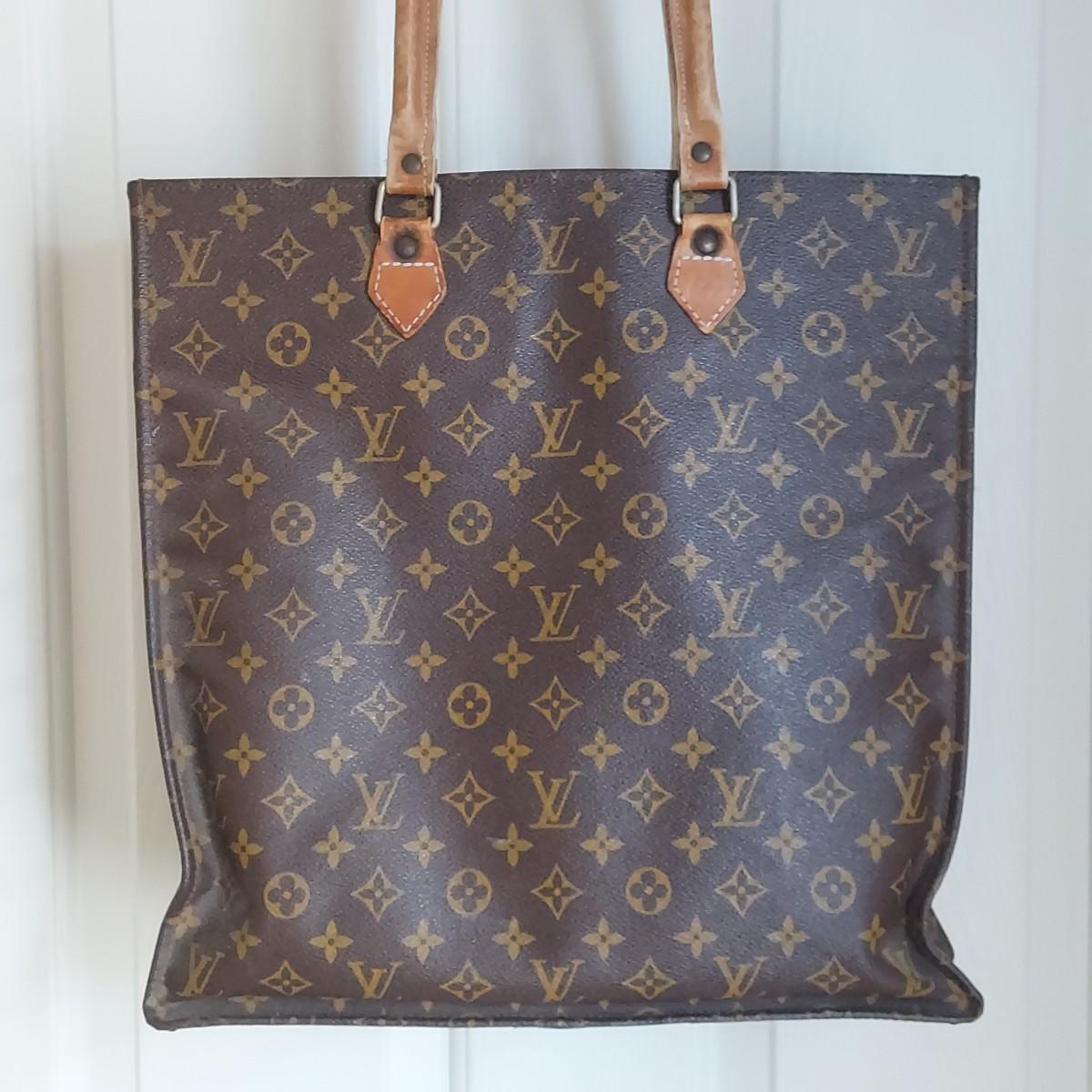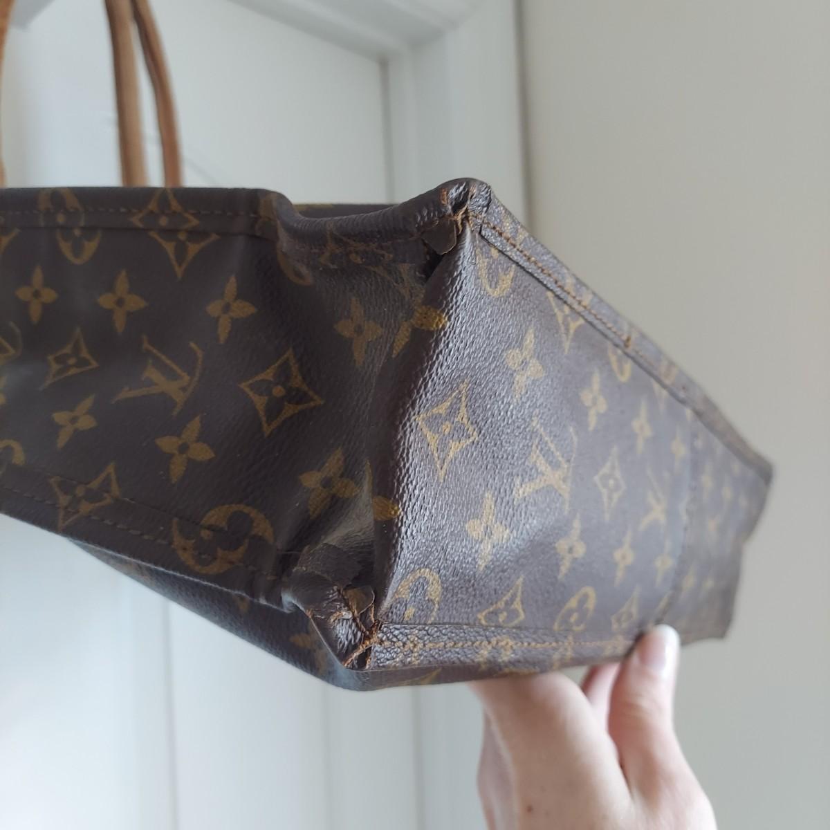 Bag appears to be a vintage Louis Vuitton monogram tote. Bag body measures 14” x 4” x 15"H. Handle drop is 11” approximately. Does not appear to have an interior label. Some overall condition issues due to age. Please see photos for details. Shipping available
