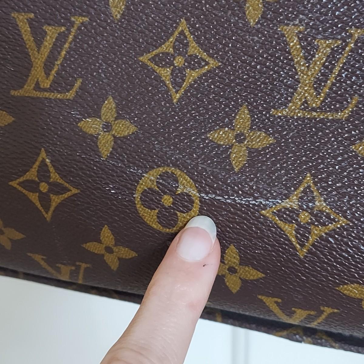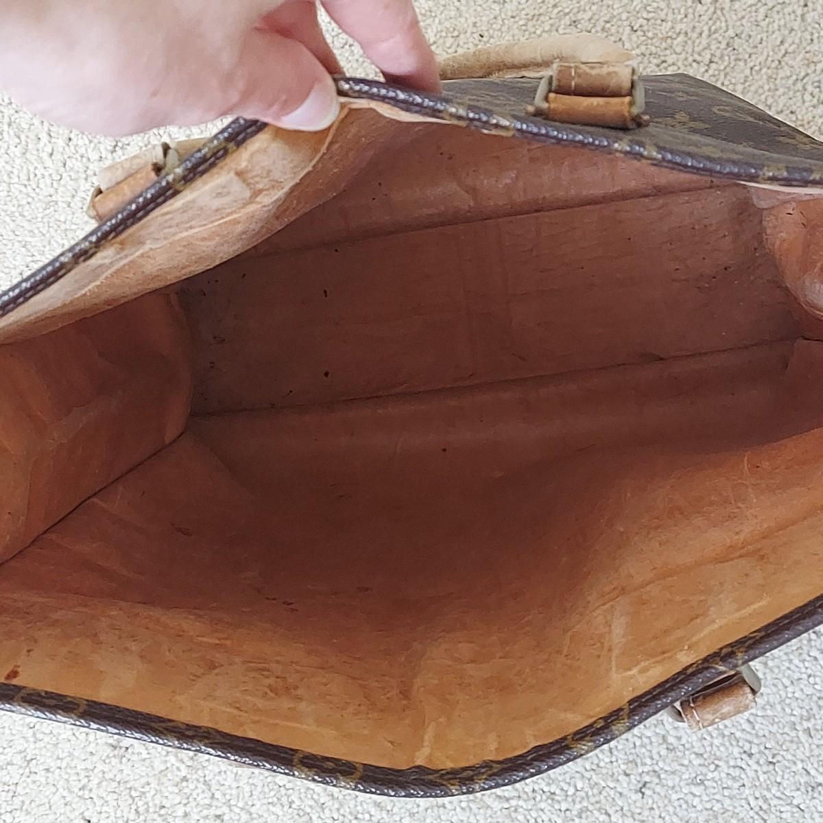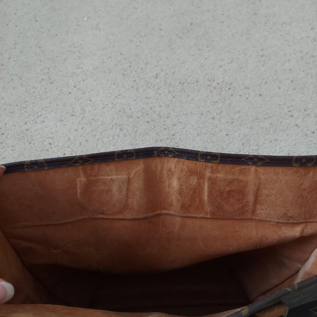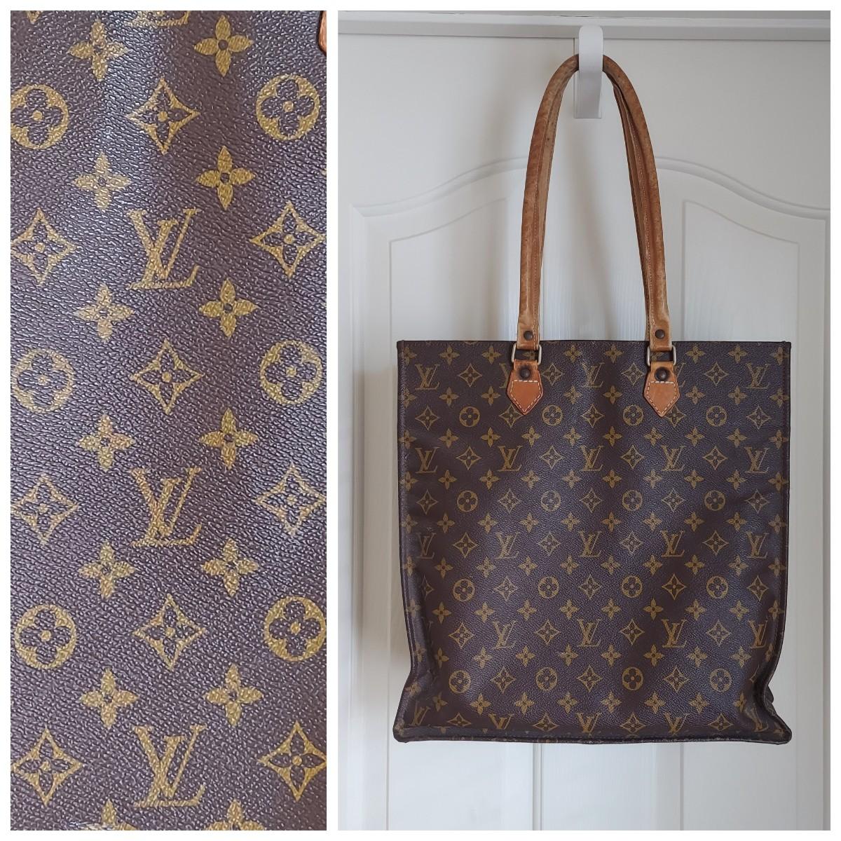 Bag appears to be a vintage Louis Vuitton monogram tote. Bag body measures 14” x 4” x 15"H. Handle drop is 11” approximately. Does not appear to have an interior label. Some overall condition issues due to age. Please see photos for details. Shipping available
