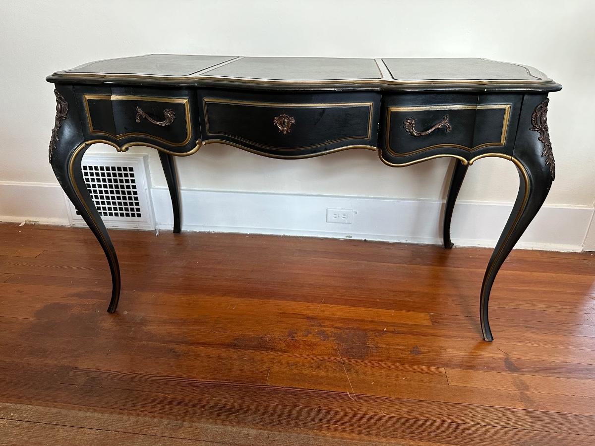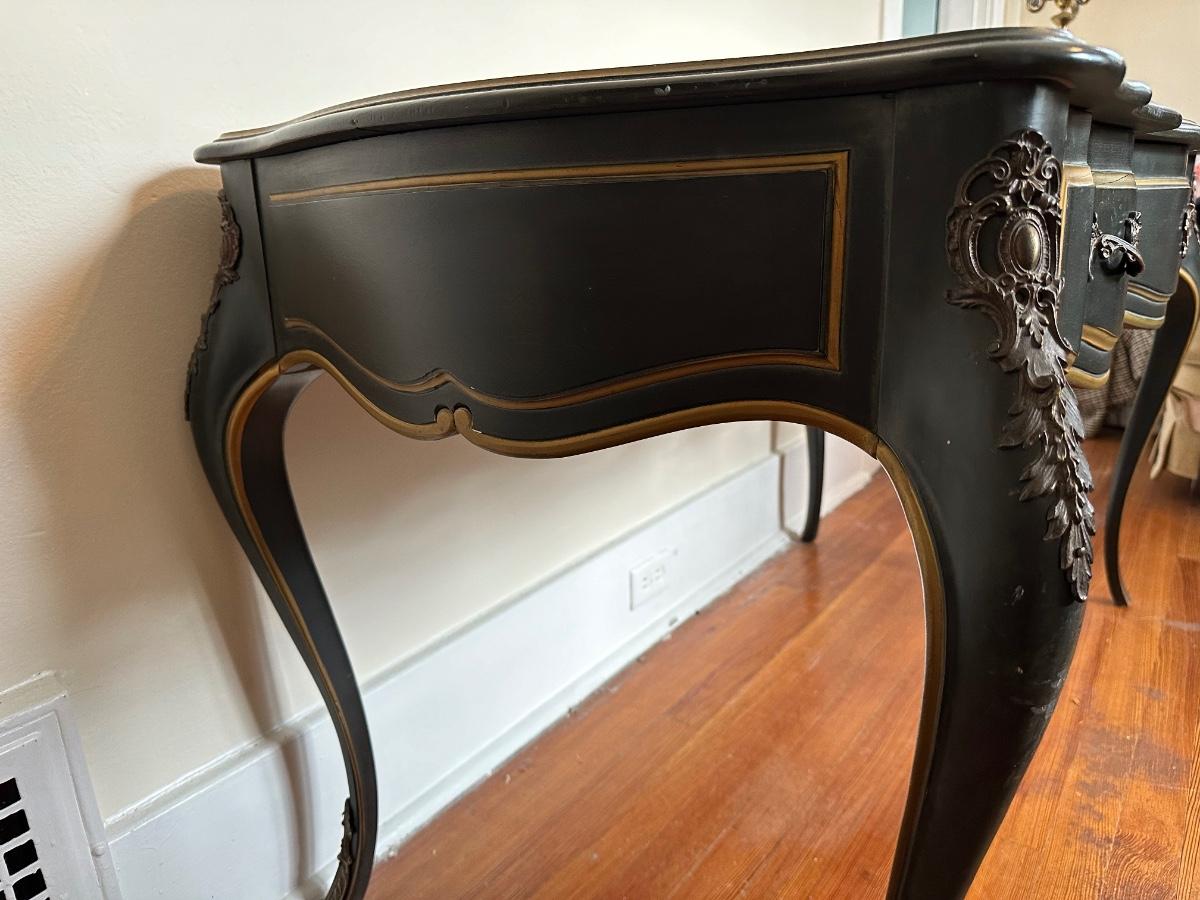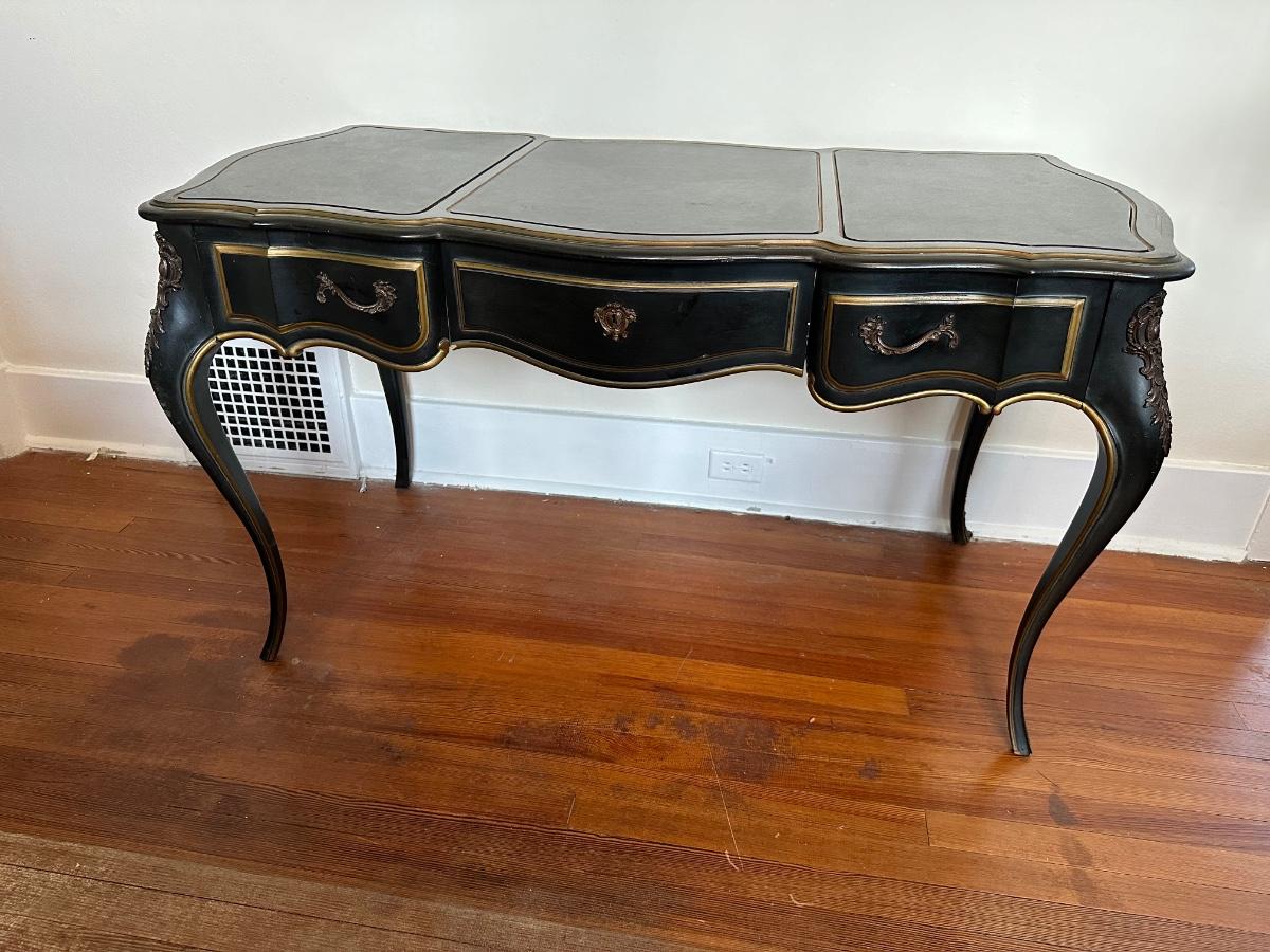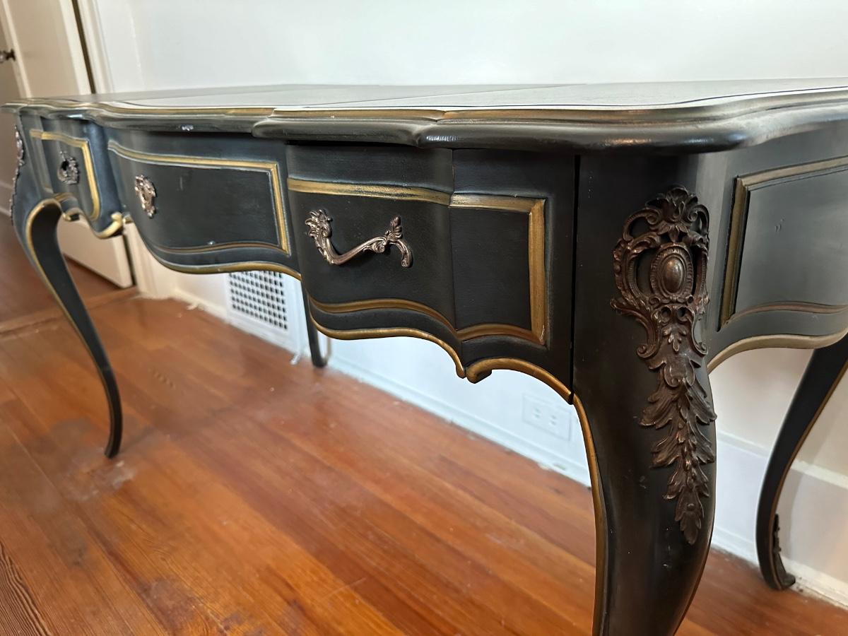 Vintage Louis XV French Style Black Lacquer Chinoiserie Writing Desk by Drexel Heritage (See Details)
