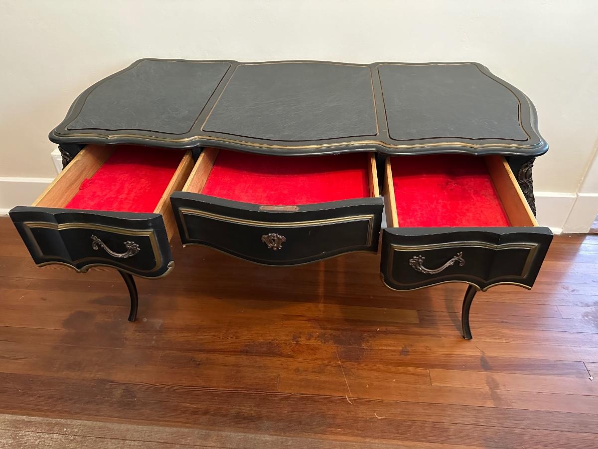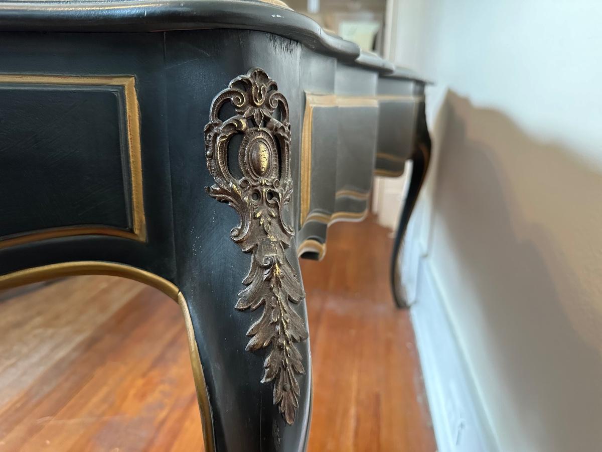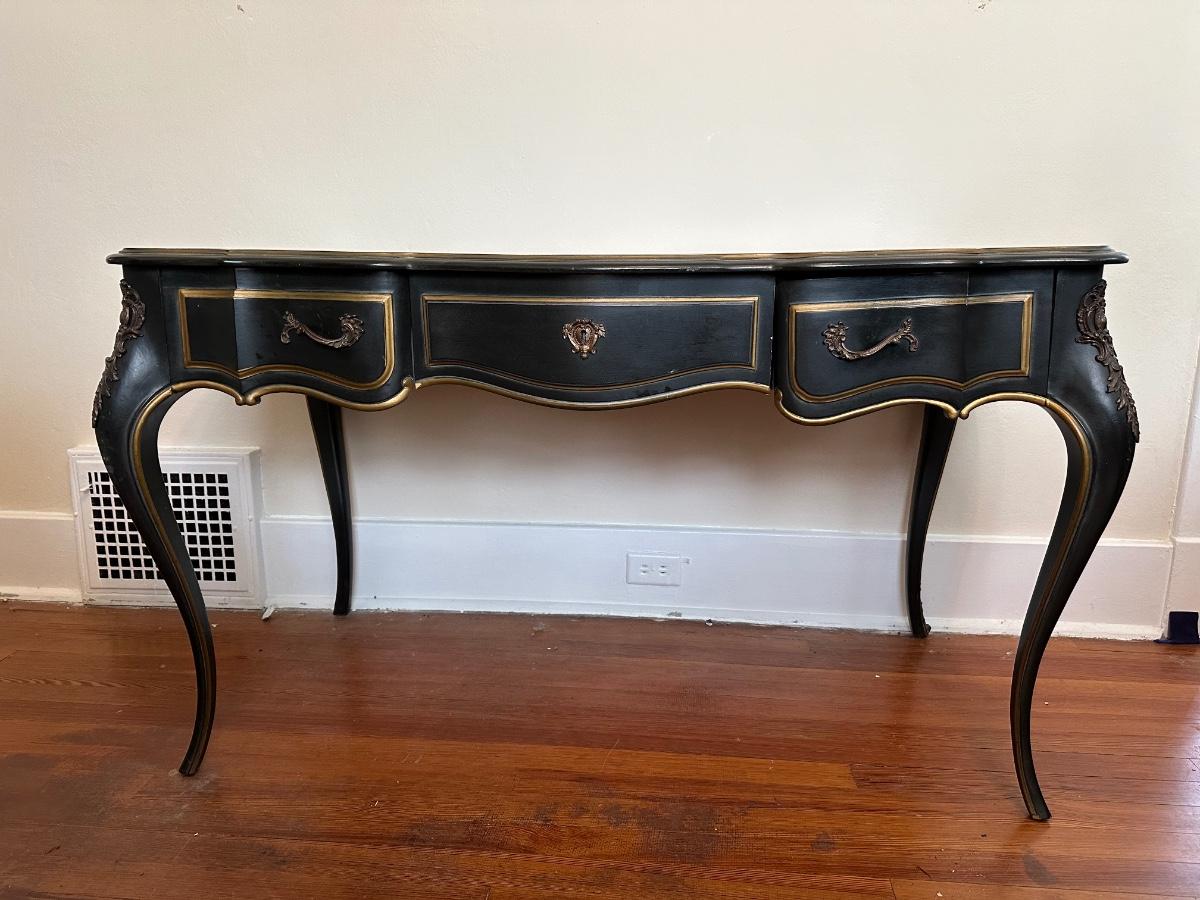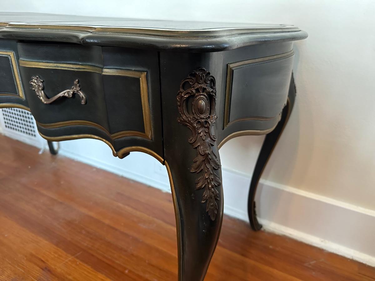 Vintage Louis XV French Style Black Lacquer Chinoiserie Writing Desk by Drexel Heritage (See Details)