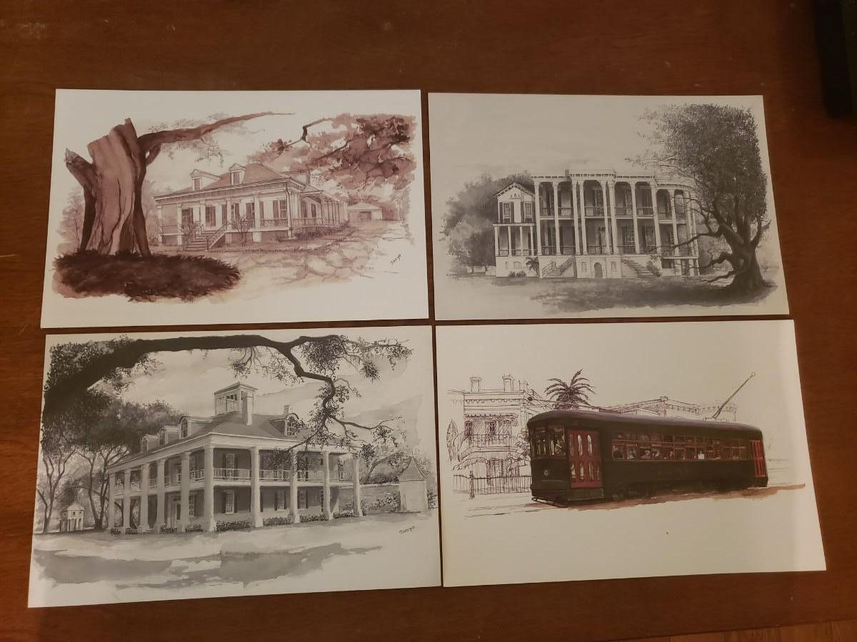 Lot of 4 vintage Louisiana 6" x 9" postcards. Nottoway Plantation, Houmas House, Tezcuco Plantation & New Orleans Streetcar.