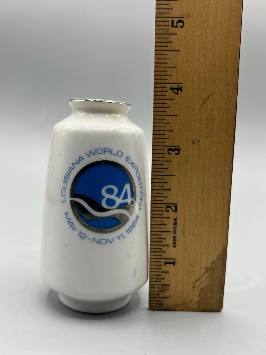 Vintage Louisiana World Exposition Commemorative Collectible Ceramic Miniature Vase, there is some light wear to the piece, but there is no significant damage and is in good vintage condition. Check pictures for more details and for sizing.