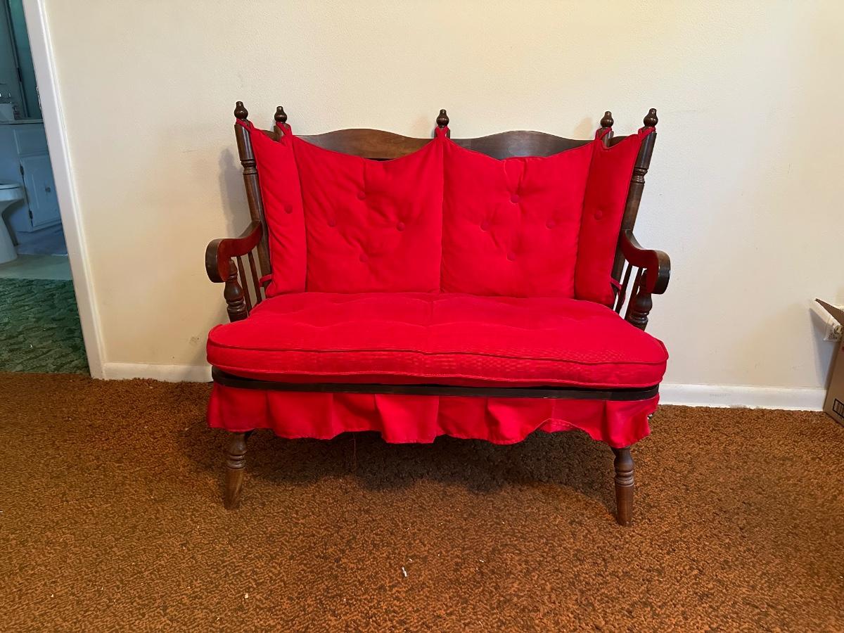 VINTAGE WOODEN LOVESEAT BENCH