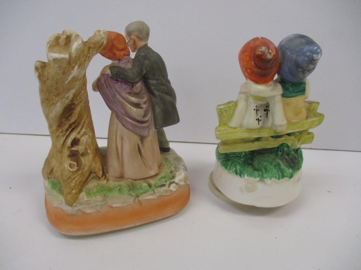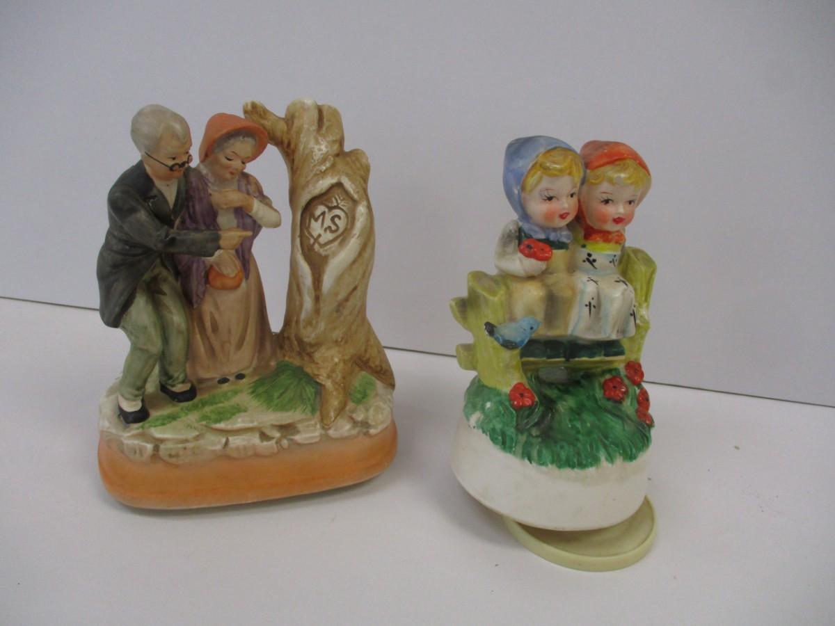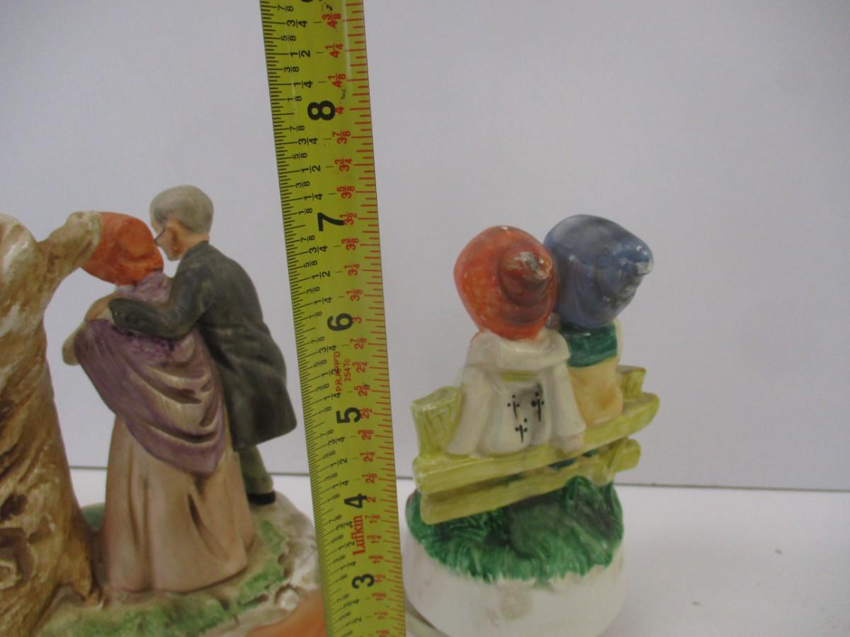 Vintage Loving Older Couple & Sisters Sitting On A Bench Revolving Music Boxes