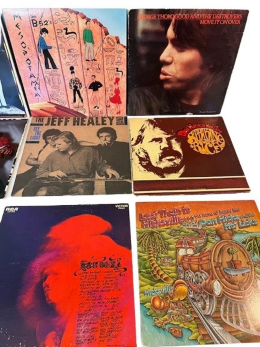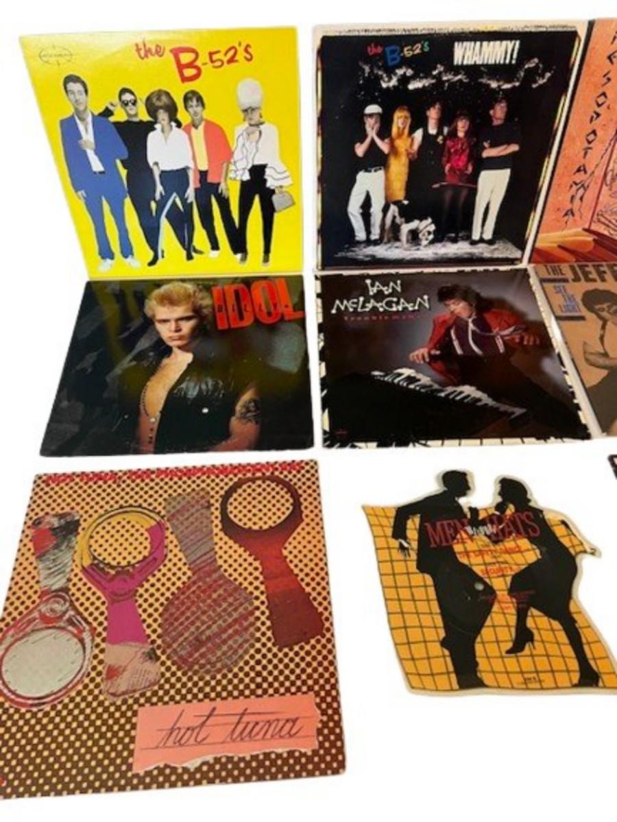 Includes The B-52's, Men Without Hats picture disc, Billy Idol, Hot Tuna, and more. Total of 12 pieces. Jackets and sleeves may have age related wear.