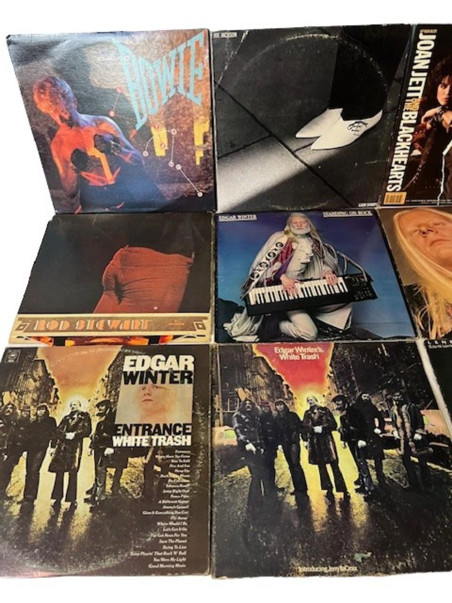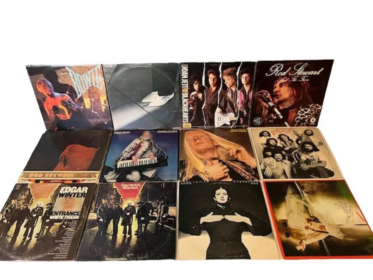 Includes David Bowie, Joan Jett, Rod Stewart, Edgar Winter, and more. Total of 12 pieces. Jackets and sleeves may have age related wear.