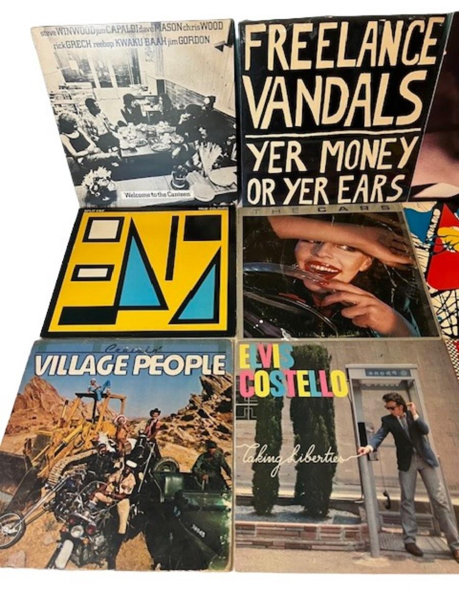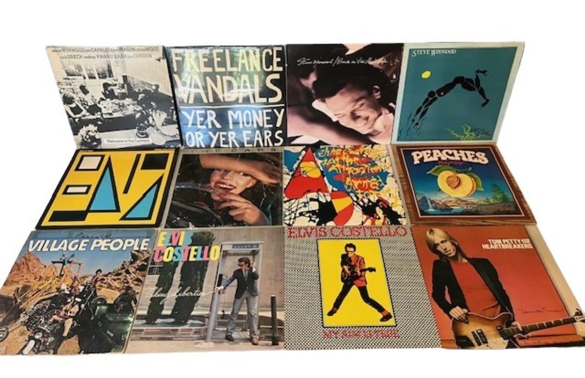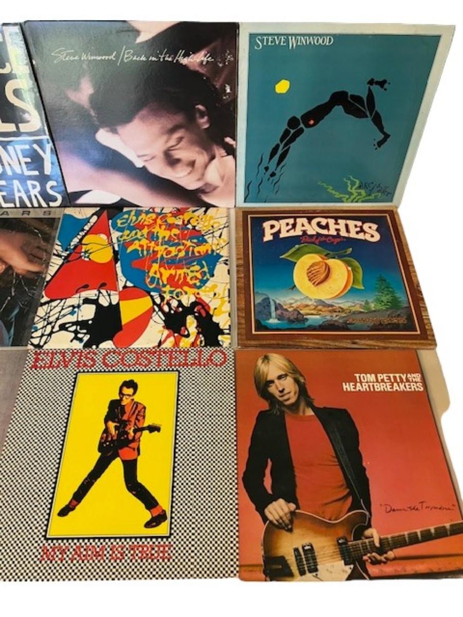 Includes Tom Petty, Elvis Costello, The Cars, Steve Winwood, and more. Total of 12 pieces. Jackets and sleeves may have age related wear.