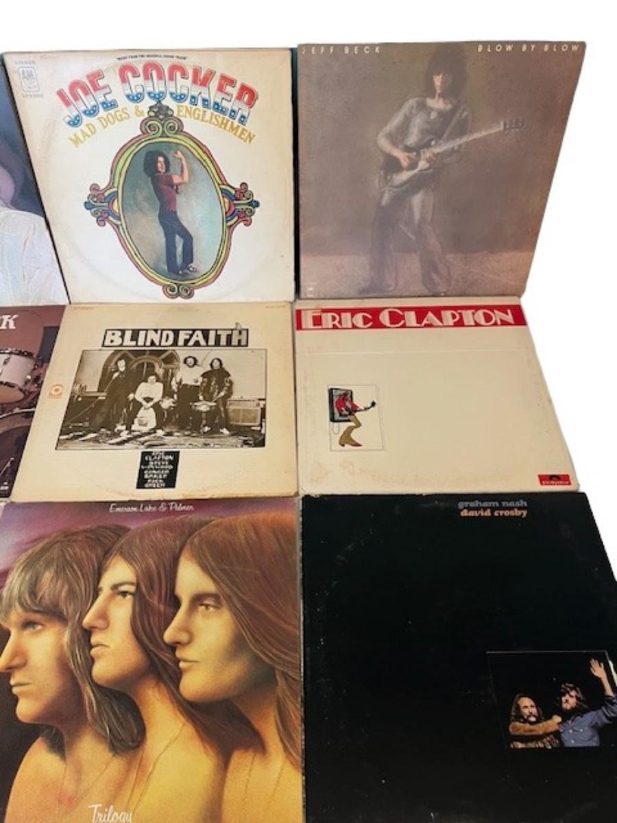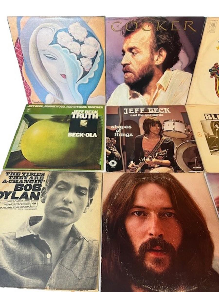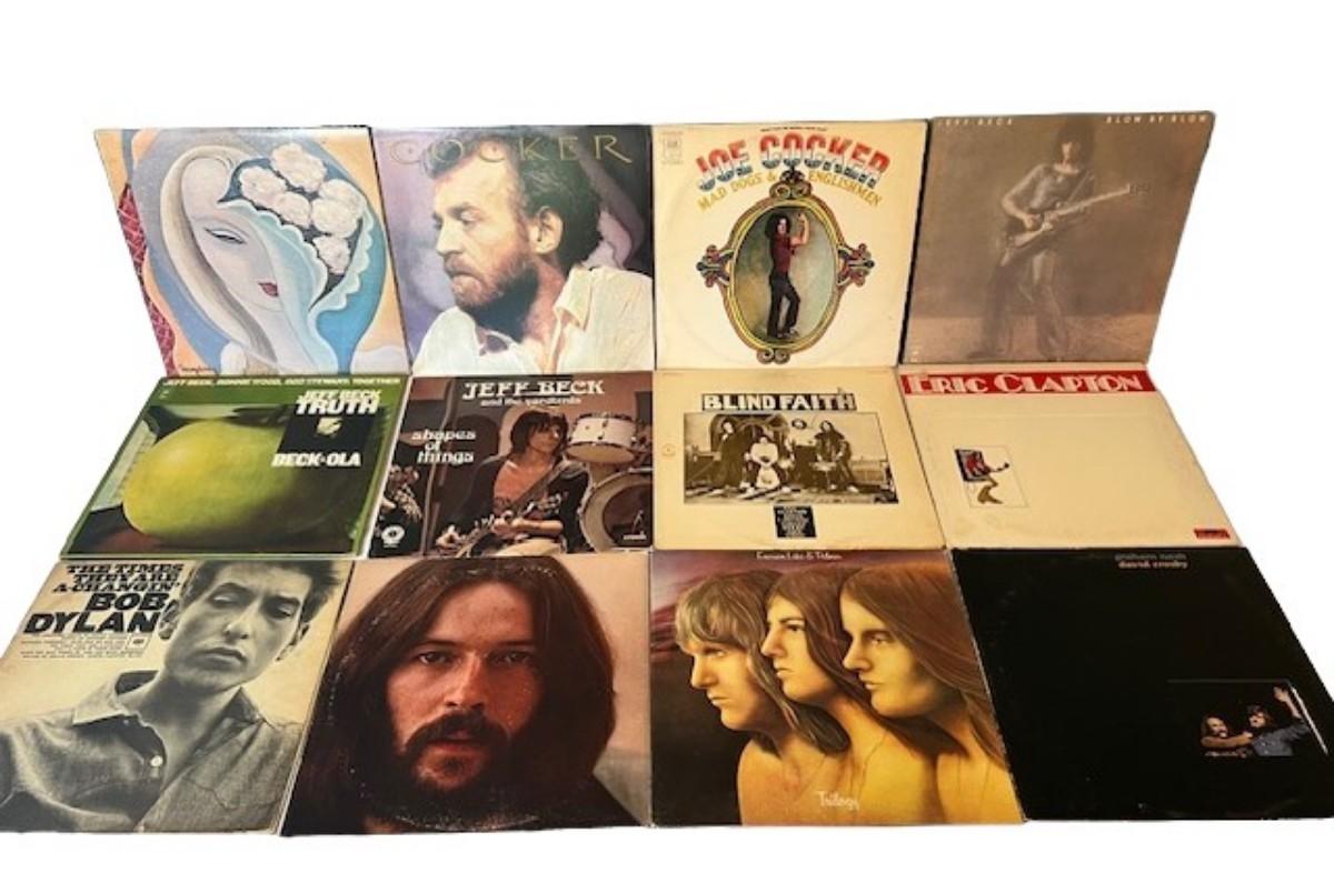 Includes Bob Dylan, Jeff Beck, Eric Clapton, and more. Total of 12 pieces. Jackets and sleeves may have age related wear.