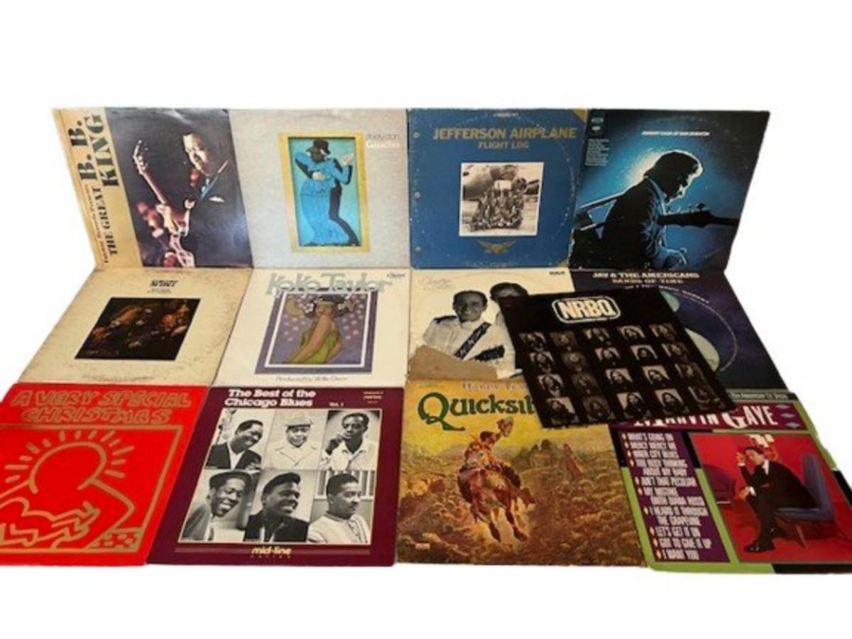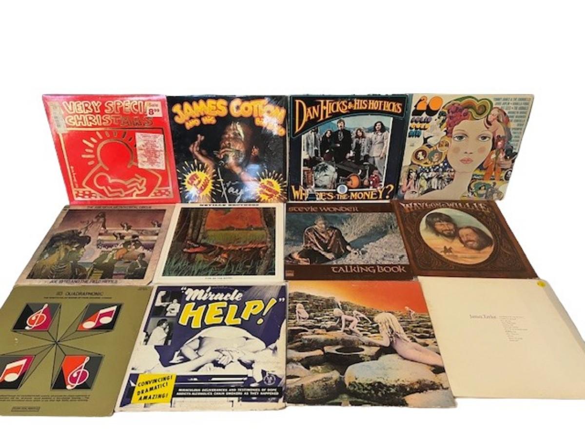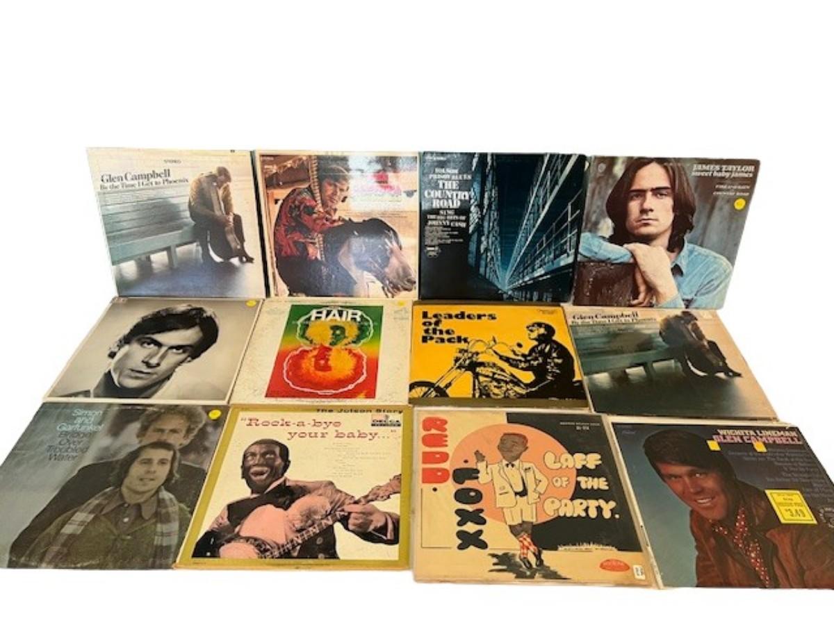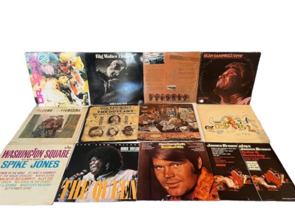 Various artists, including Marvin Gaye, Glen Campbell, Koko Taylor, Stevie Wonder, and more. Total of 45+ pieces. Jackets and sleeves may have age related wear. This lot may or may not also include extra empty jackets, and/or records without jackets.