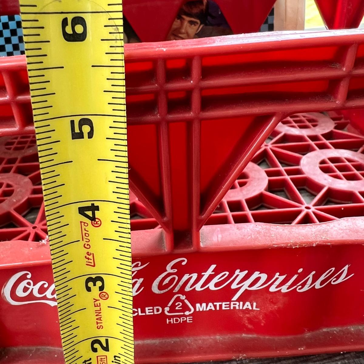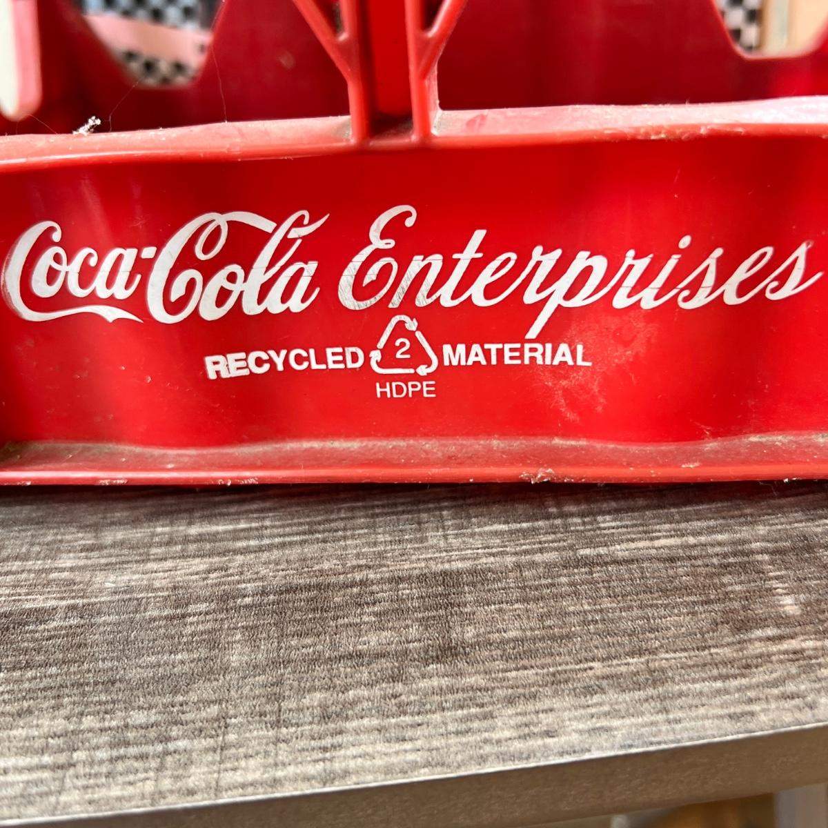 Vintage records and hard plastic vintage Coka-Cola crate.