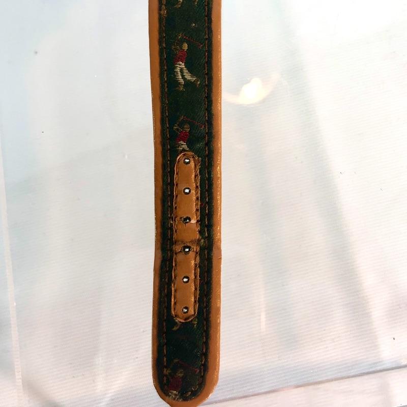 Leather band with golfers in various stages of their swing. Also in excellent condition, but missing the buckle (easily replaced at any watch shop).