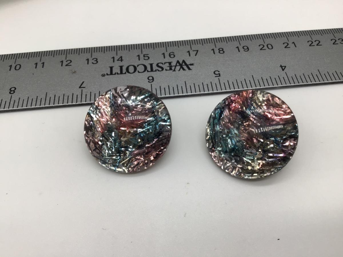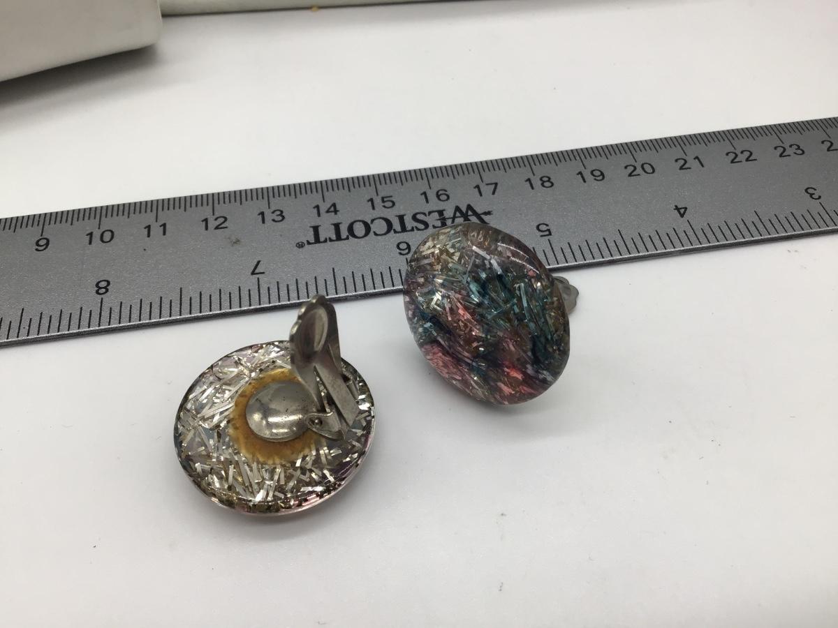 Vintage Lucite Acrylic Confetti Glitter Clip On Earrings Pink teal Silver