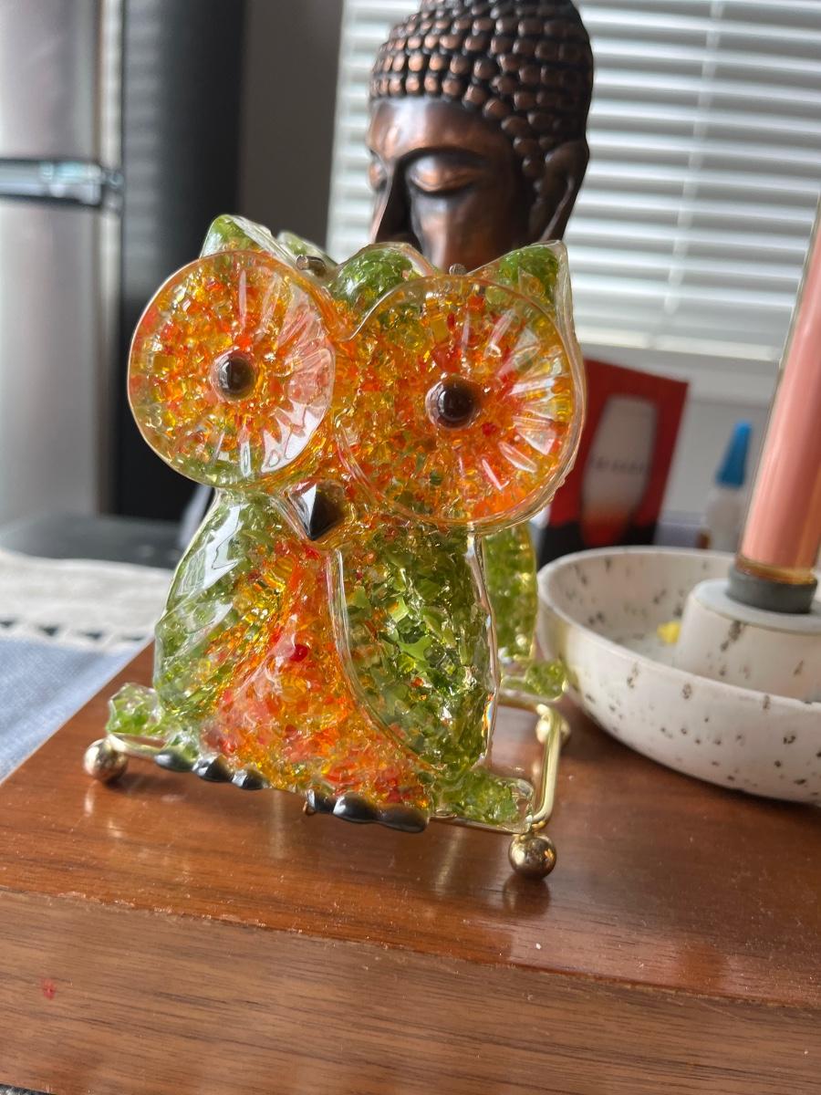 Vintage owl lucite napkin holder.