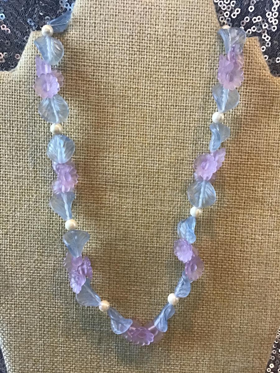 Vintage lucite pastel frosted transparent flower faux pearl necklace