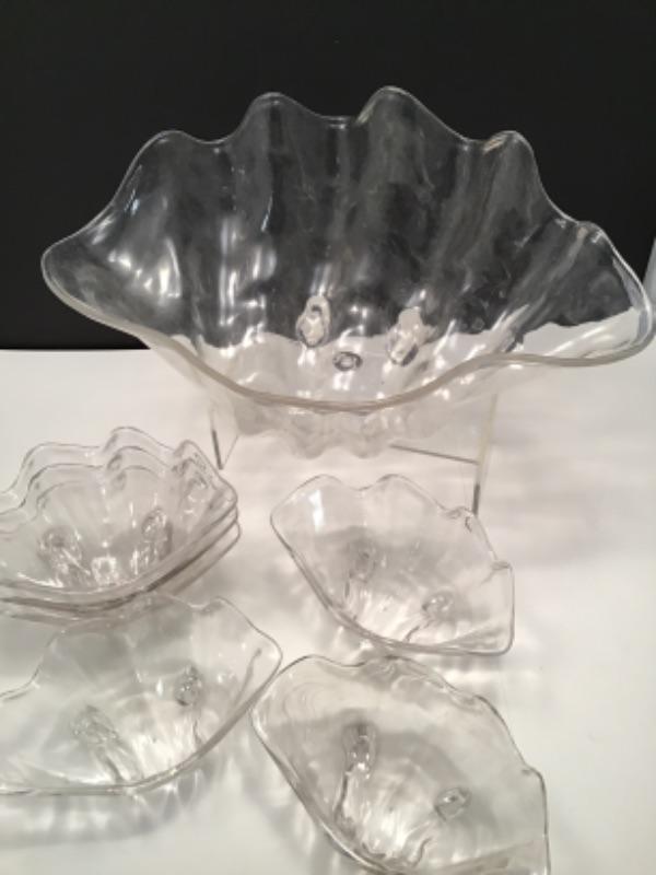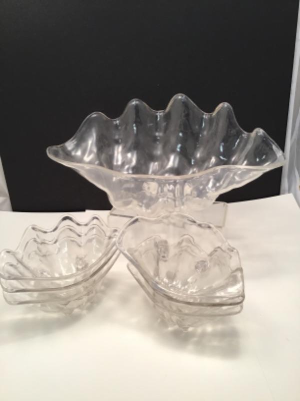 Vintage Lucite shell shaped salad serving  bowl and six salad bowls