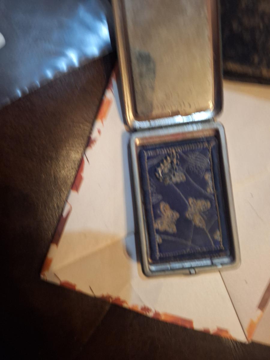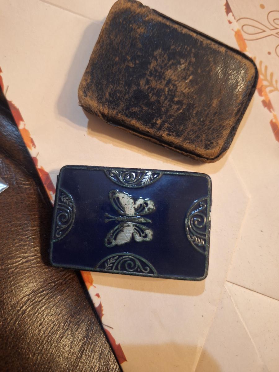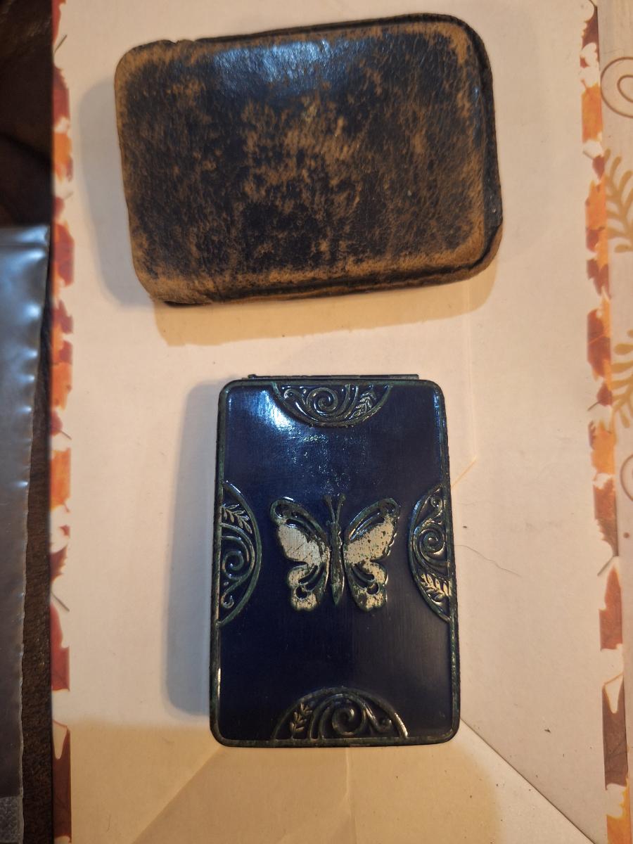 Vintage Lucretia Vanderbilt Blue enamel powder box compact in leather case