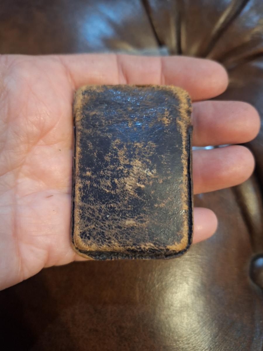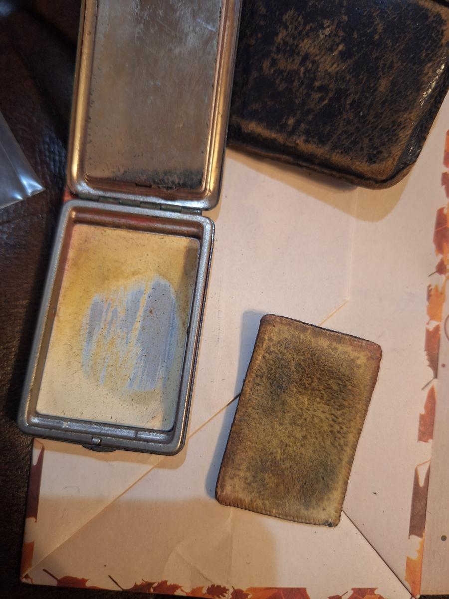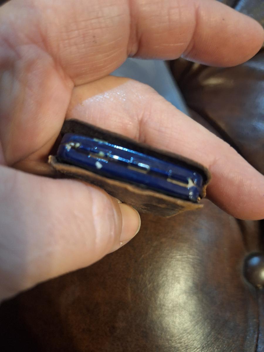 Vintage Lucretia Vanderbilt Blue enamel powder box compact in leather case