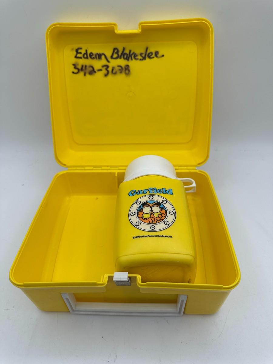 The yellow Garfield box has owner's name in marker. Should come off by writing over it with a dry erase marker or using acetone.