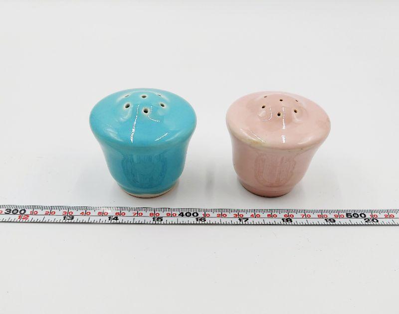 VINTAGE LU-RAYBLUE & PINK PASTELS SALT/PEPPER SHAKERS