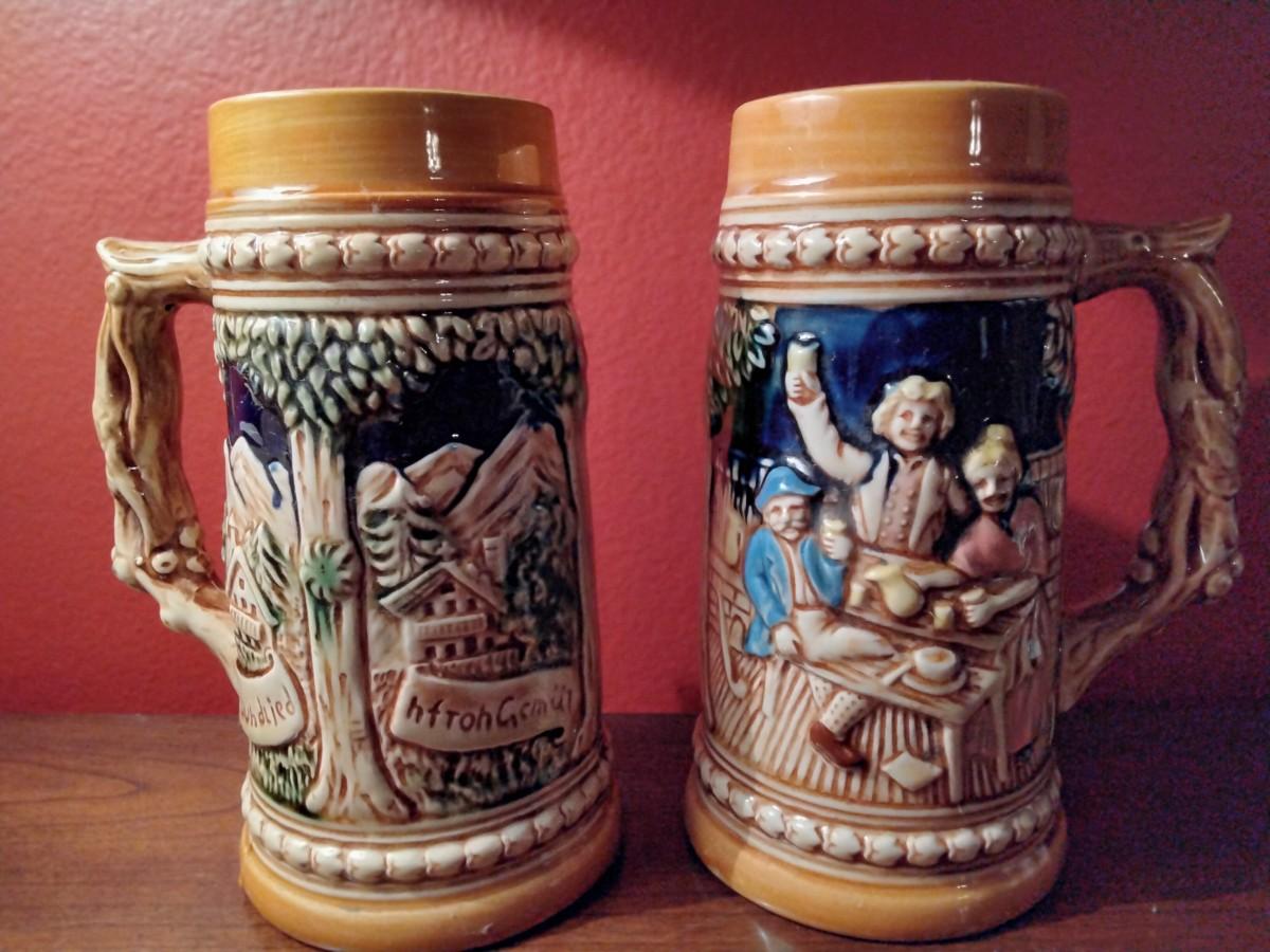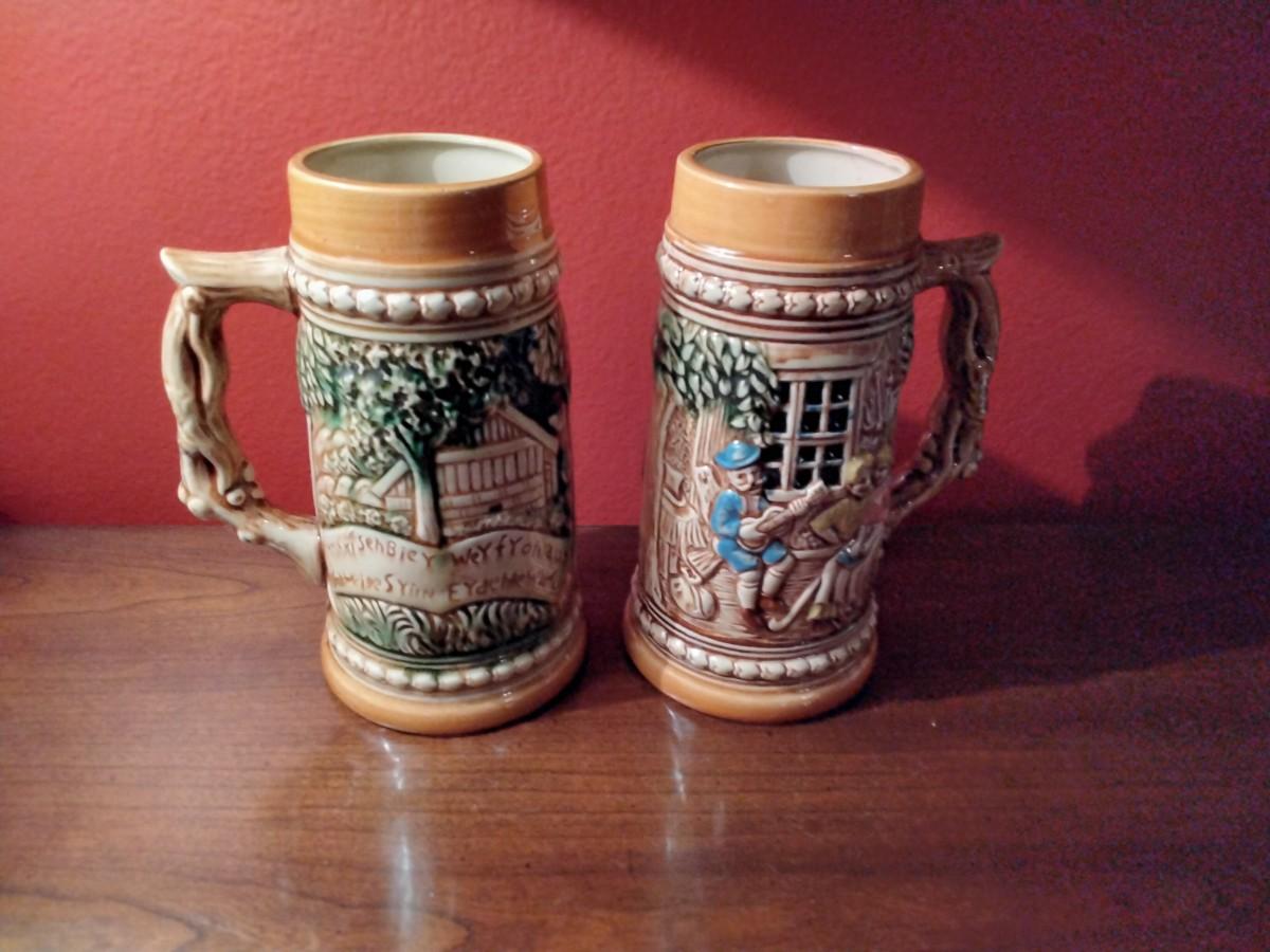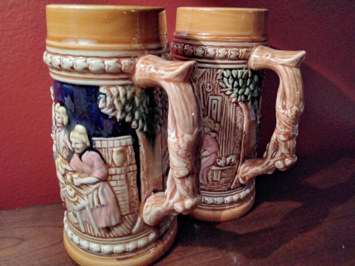Vintage Lusterware German Beer Stein Ceramic Mugs Embossed Handpainted Japan