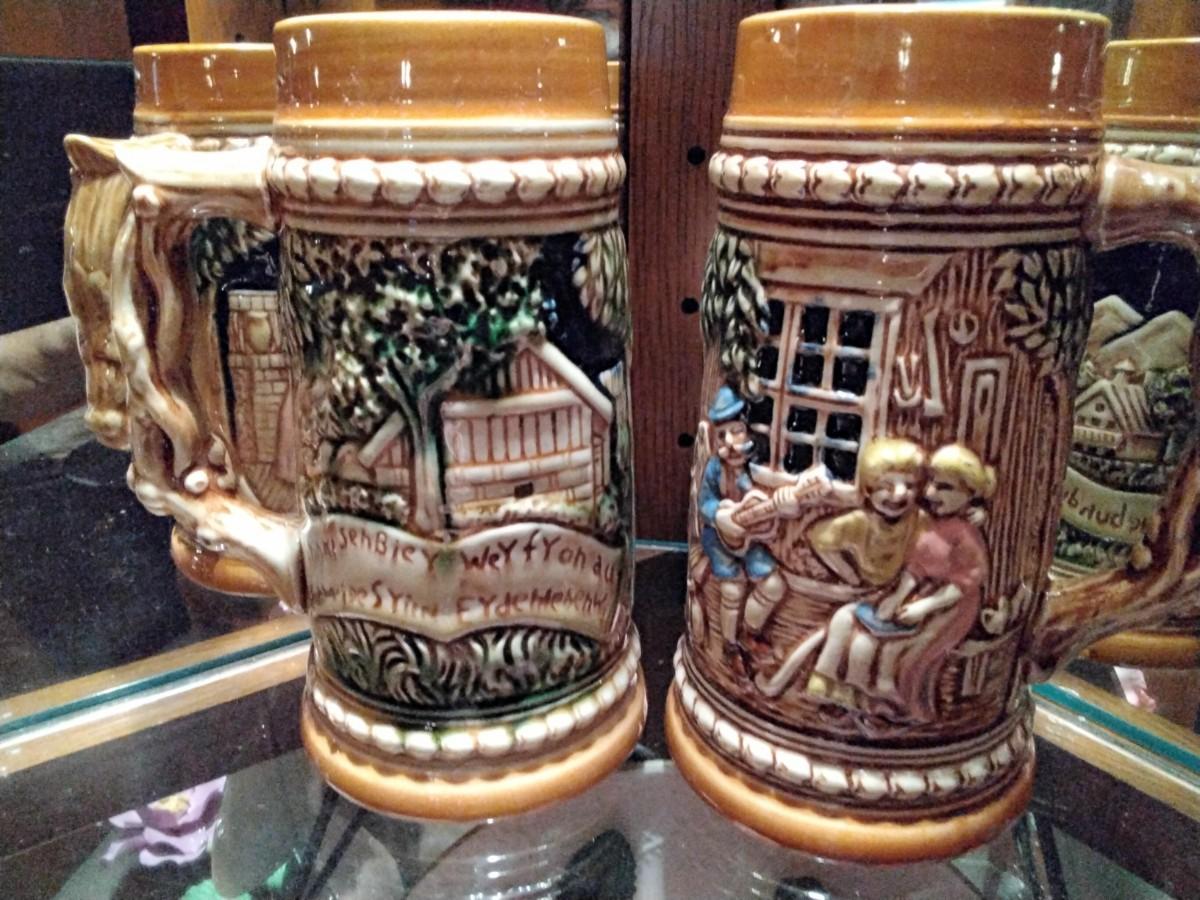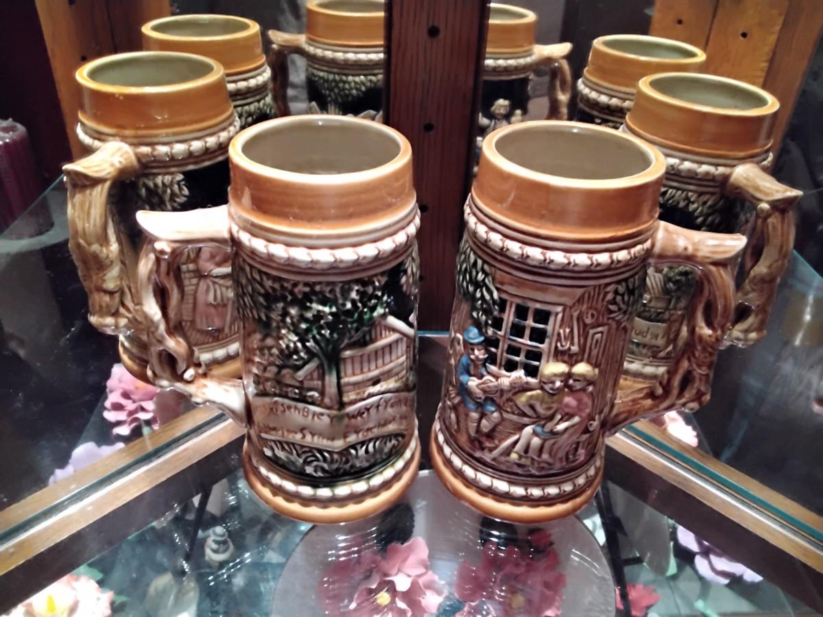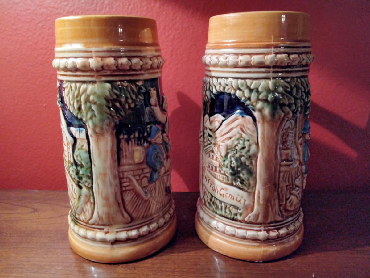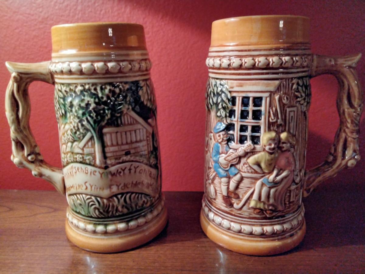 Vintage Lusterware German Beer Stein Ceramic Mugs Embossed Handpainted Japan
