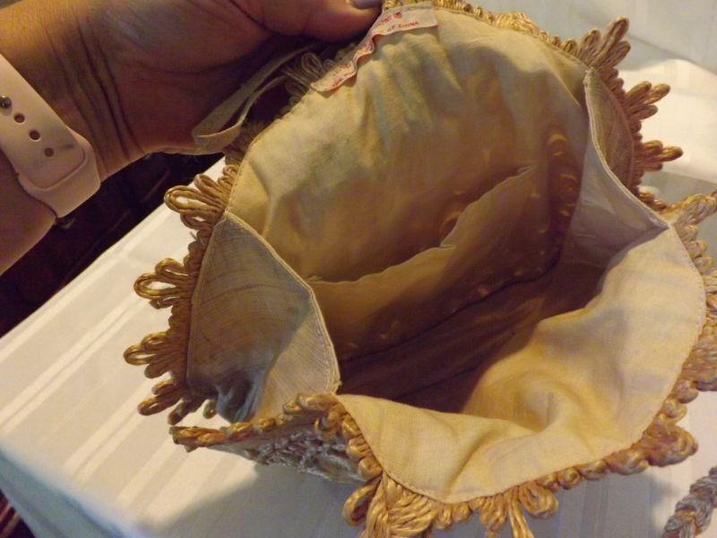 Made in 1960's in the People's Republic of China, beautiful macrame, jute handbag. Never used. About 10" round. **Please read Terms and Conditions before placing a bid. Pick up is Sunday, September 15, 2019 from 11am to 4pm and Tuesday, September 17 from 4pm-7pm in Sicklerville. All sales are final. All sales are as is, where is. Please review all photos. Any props included in photos are not included in listing. All measurements are approximate.