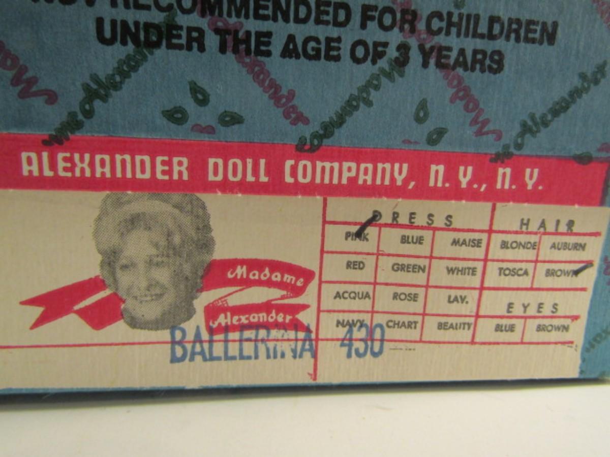Vintage Madame Alexander Doll 'Ballerina' #430 with Box and Paperwork