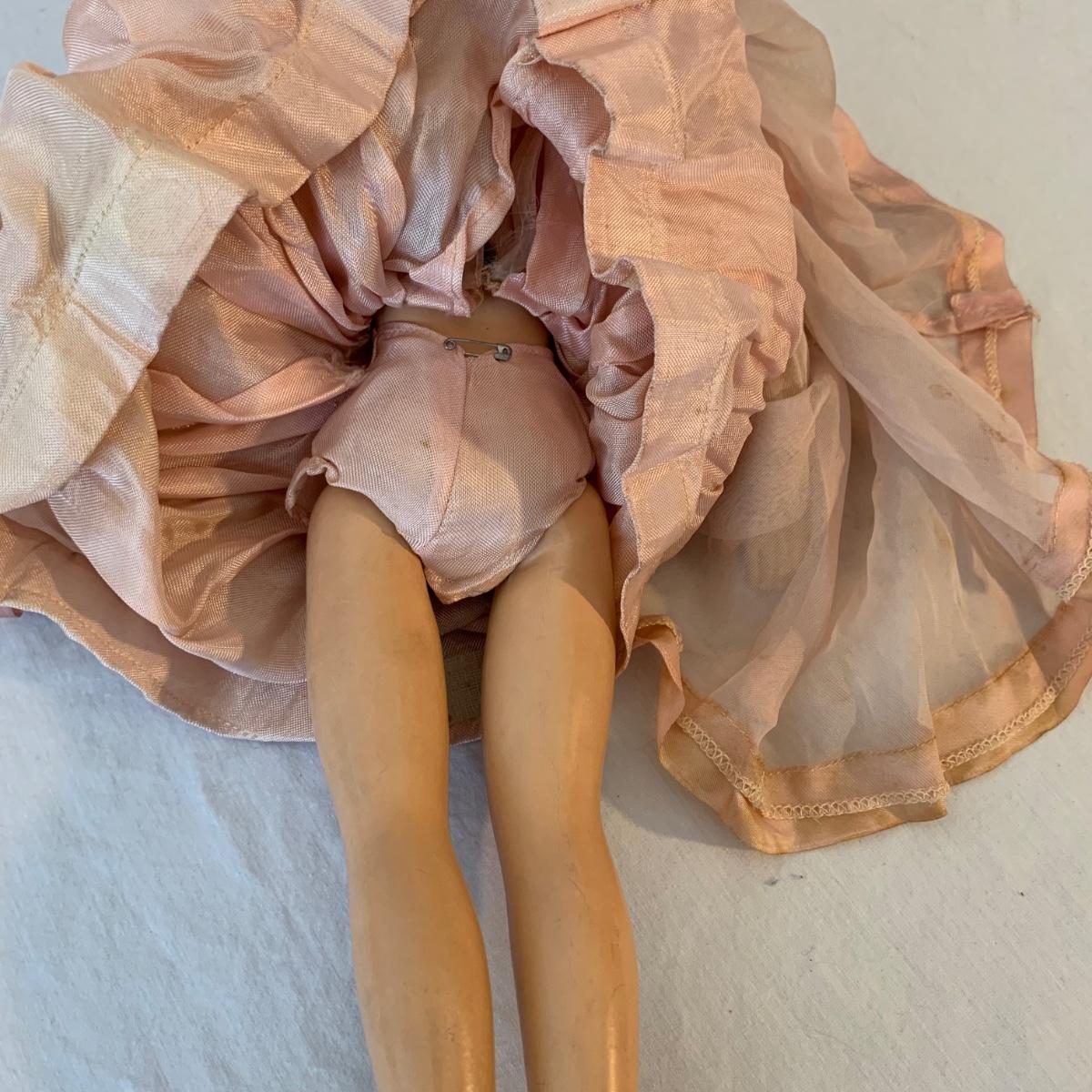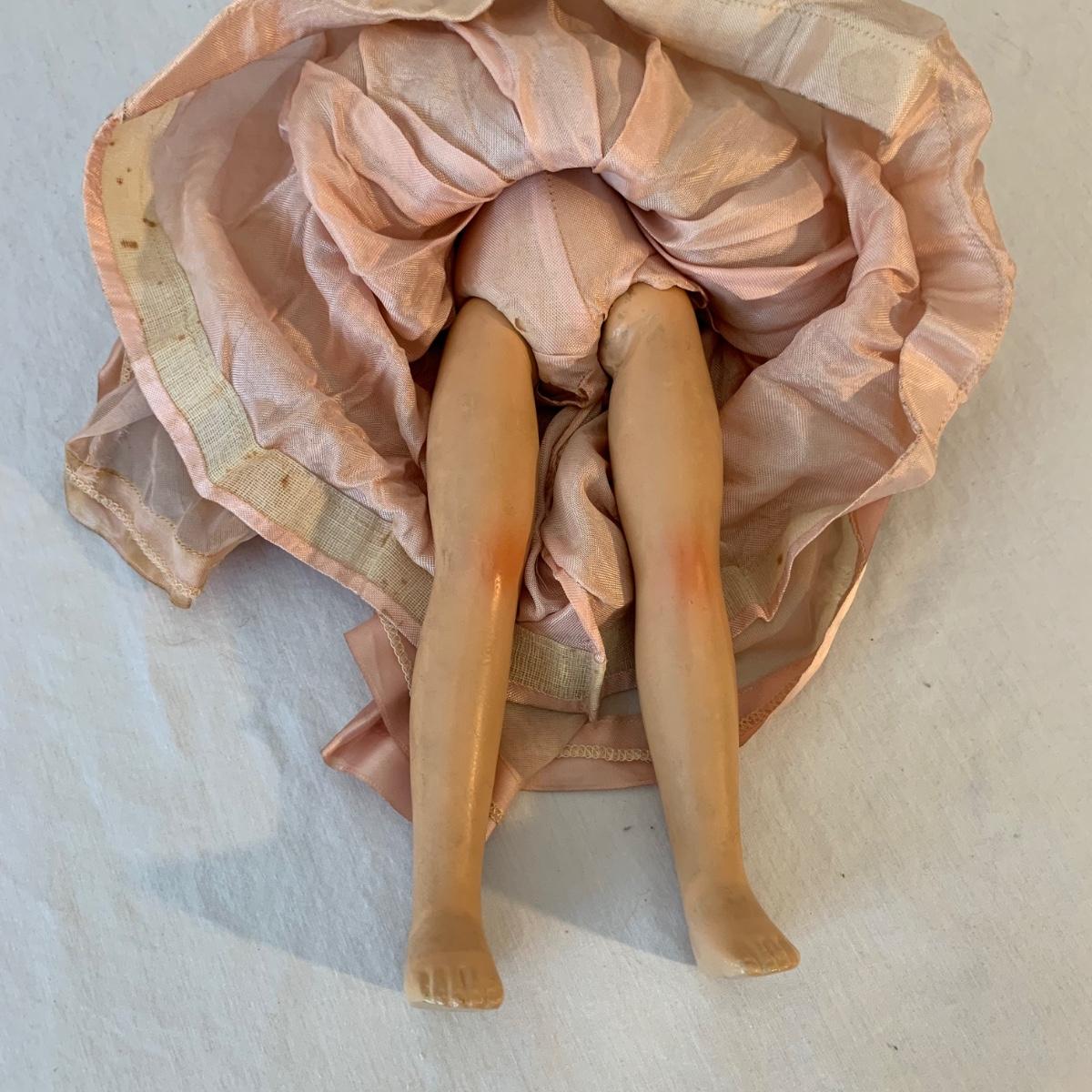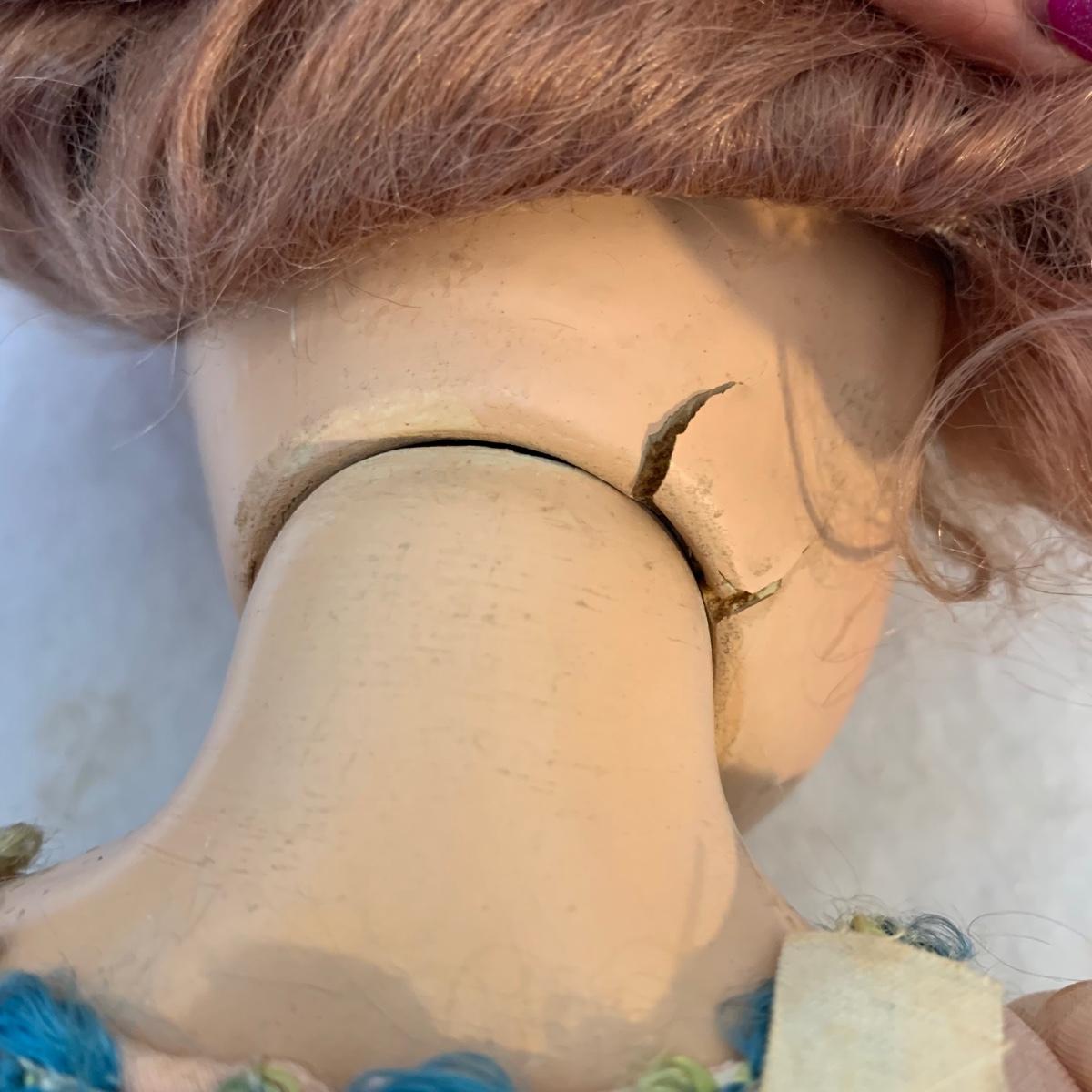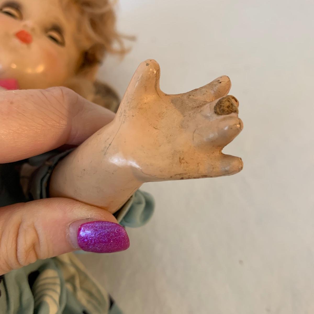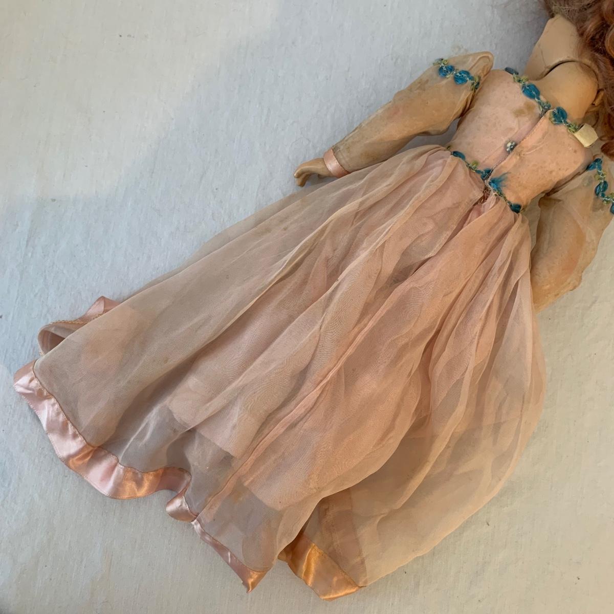 Three vintage baby dolls. All have eyes that open when the doll is upright and close when it is laying down. The doll with the light pink long sleeved dress has a dress tag that reads Madame Alexander and it appears that the back of her neck is branded with MME Alexander as well. All three dolls are in fair condition with cracks and other blemishes apparent on all three, as well as clothing that is quite worn. The largest doll that is wearing shoes is approximately 21” long. This doll and the Madame Alexander can sit upright with no help, but the doll with the blue dress cannot. Shipping available.