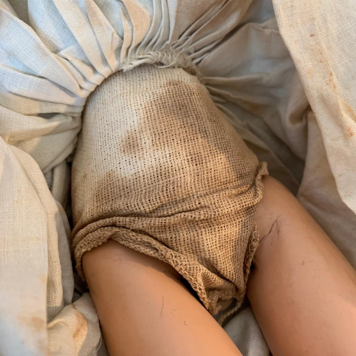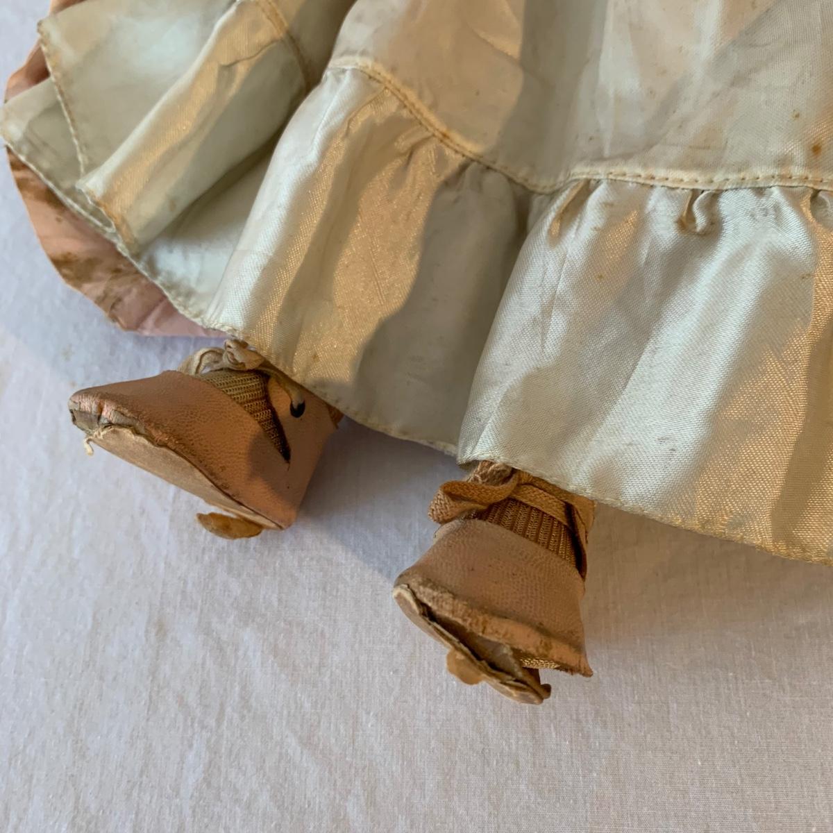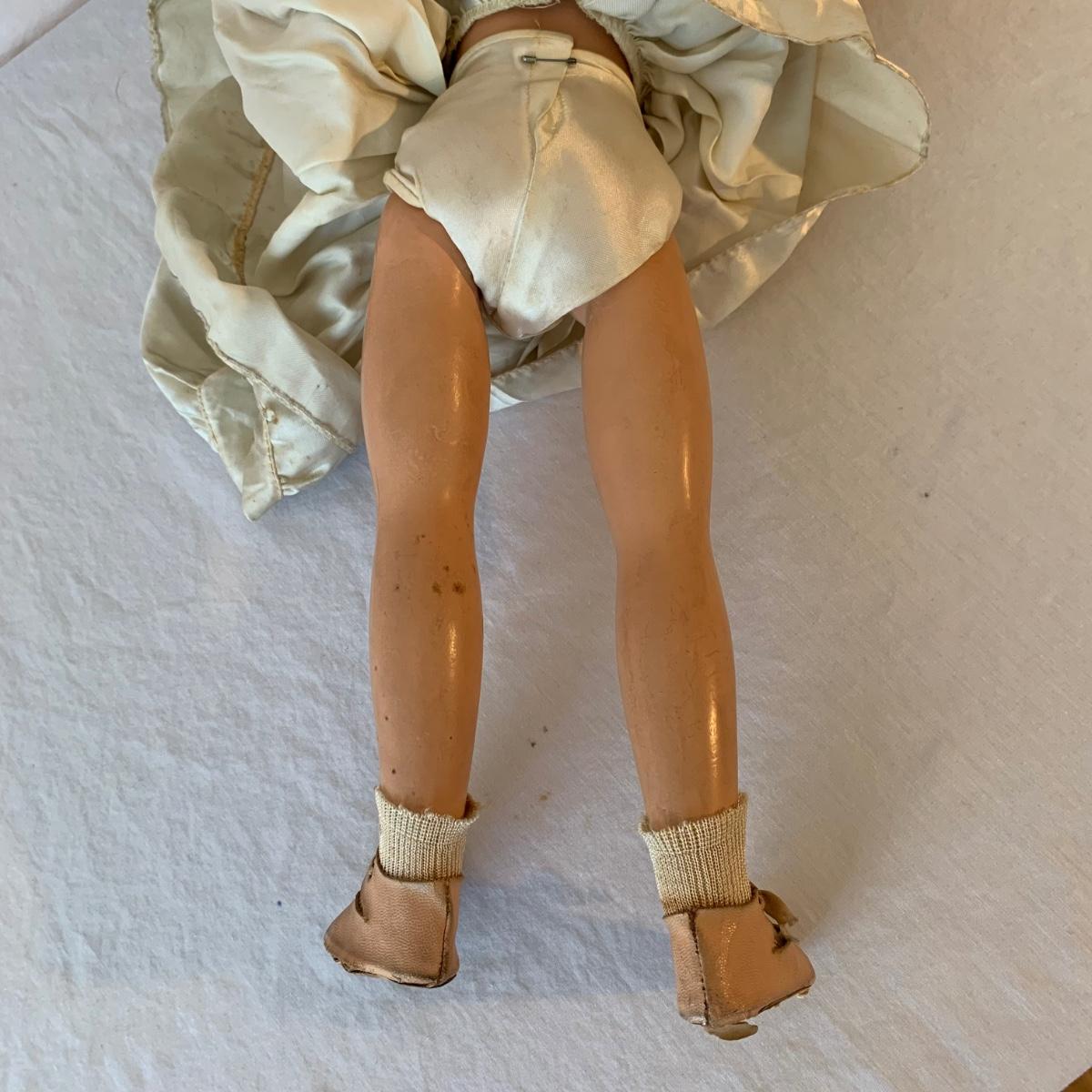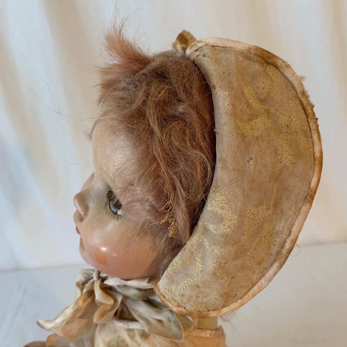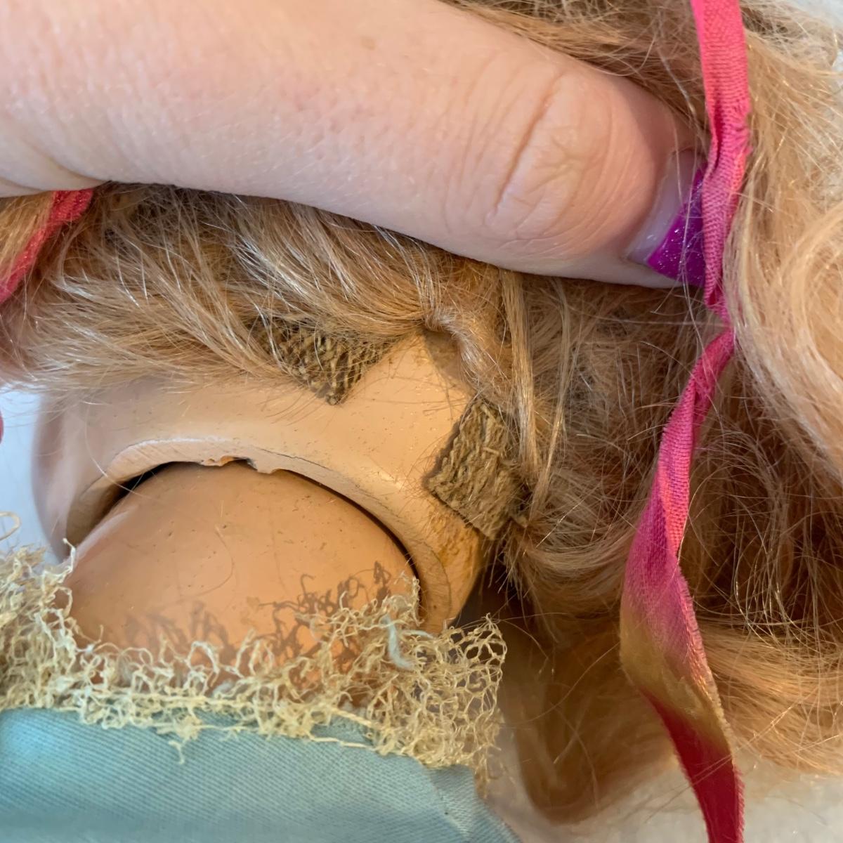Three vintage baby dolls. All have eyes that open when the doll is upright and close when it is laying down. The doll with the light pink long sleeved dress has a dress tag that reads Madame Alexander and it appears that the back of her neck is branded with MME Alexander as well. All three dolls are in fair condition with cracks and other blemishes apparent on all three, as well as clothing that is quite worn. The largest doll that is wearing shoes is approximately 21” long. This doll and the Madame Alexander can sit upright with no help, but the doll with the blue dress cannot. Shipping available.