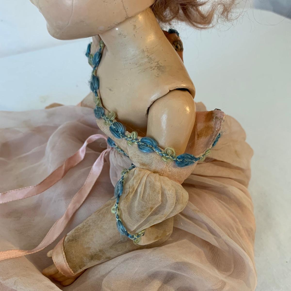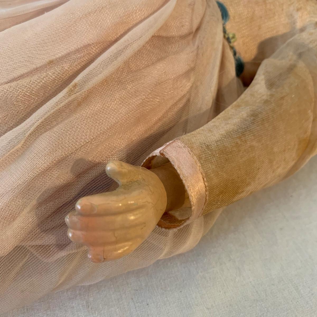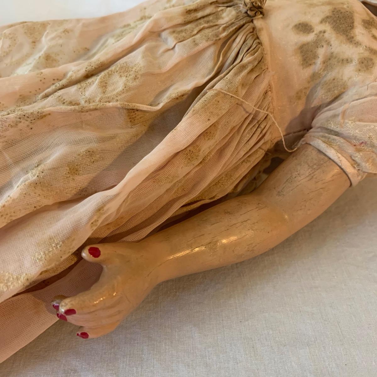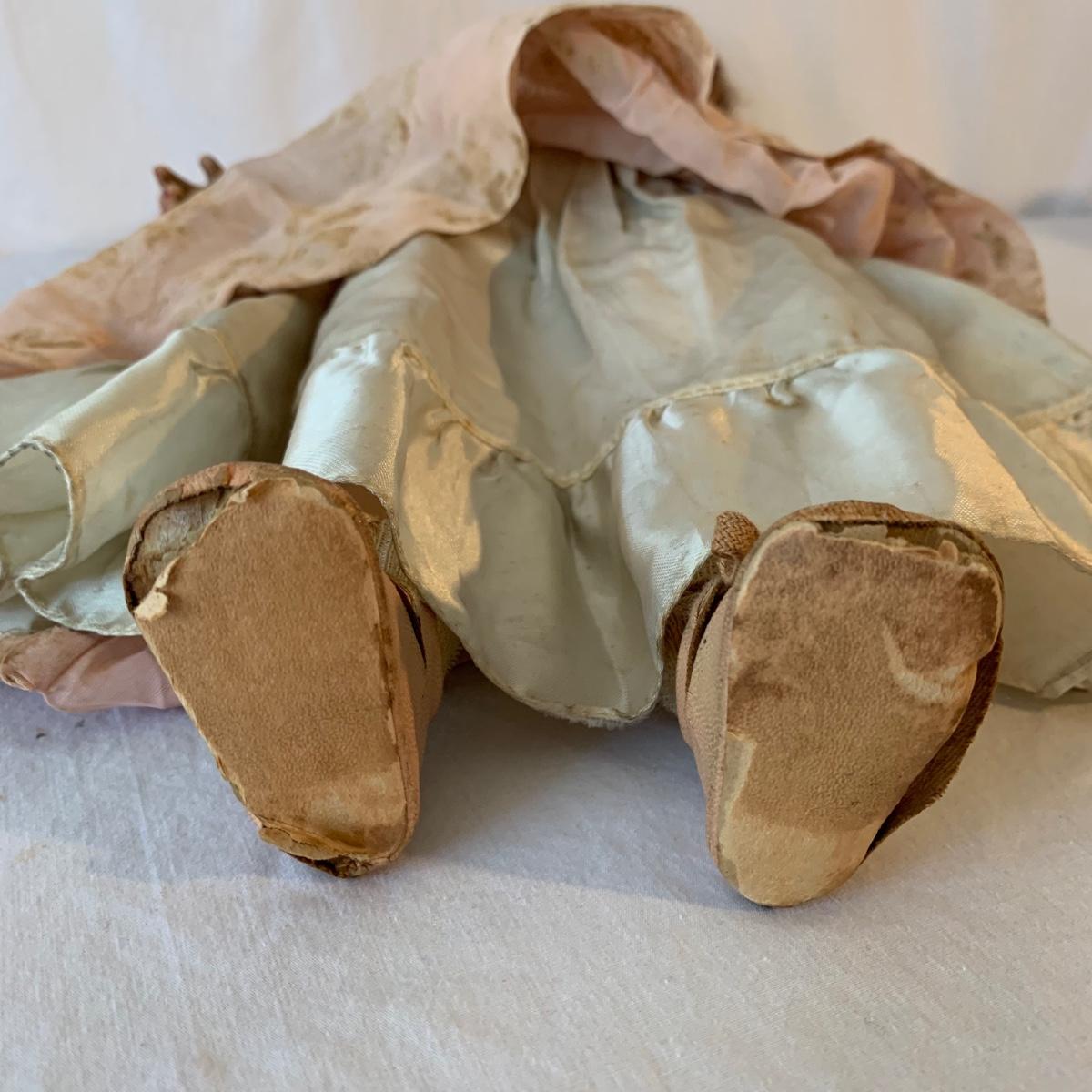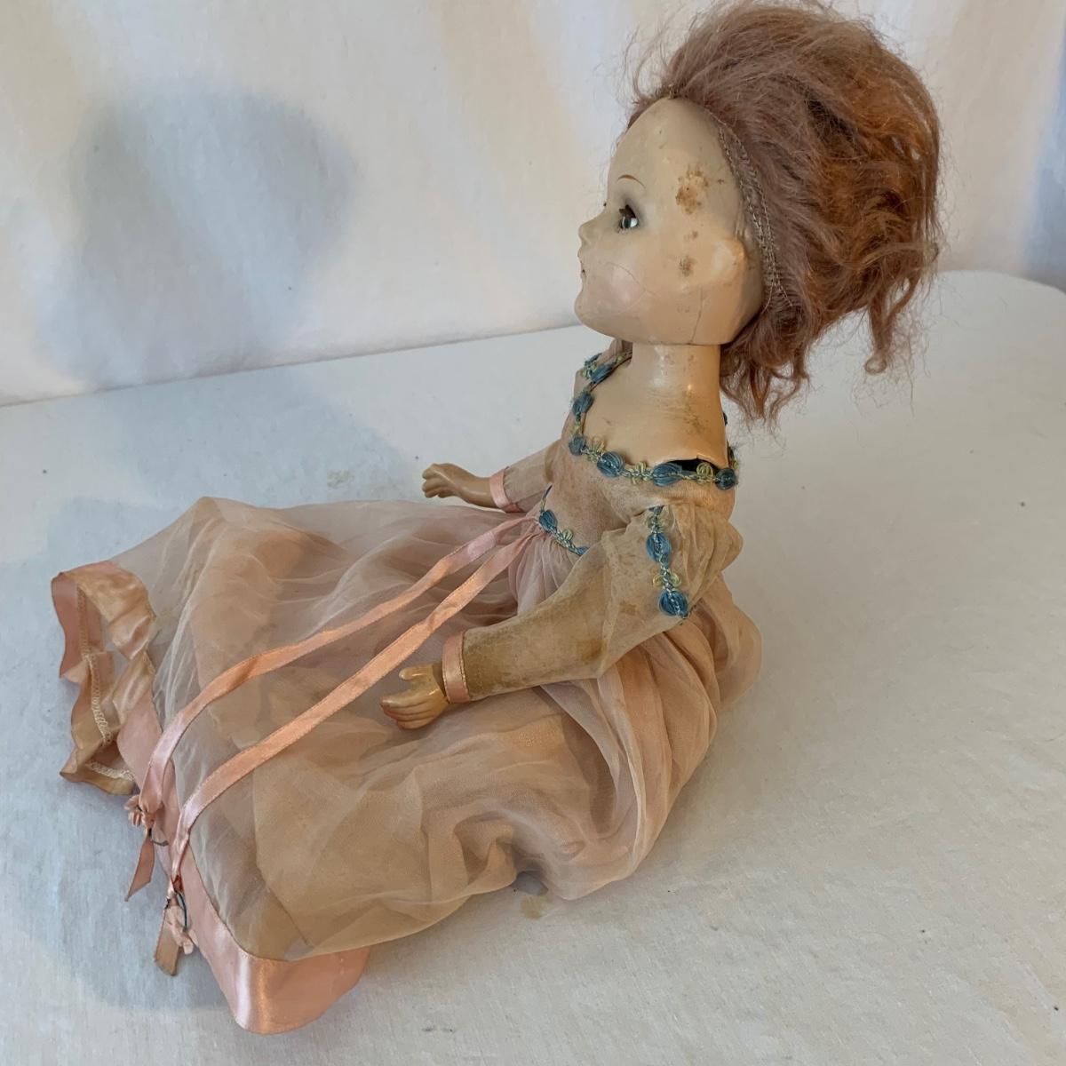 Three vintage baby dolls. All have eyes that open when the doll is upright and close when it is laying down. The doll with the light pink long sleeved dress has a dress tag that reads Madame Alexander and it appears that the back of her neck is branded with MME Alexander as well. All three dolls are in fair condition with cracks and other blemishes apparent on all three, as well as clothing that is quite worn. The largest doll that is wearing shoes is approximately 21” long. This doll and the Madame Alexander can sit upright with no help, but the doll with the blue dress cannot. Shipping available.