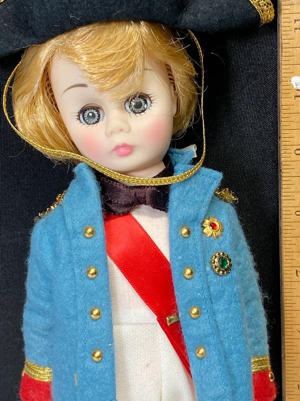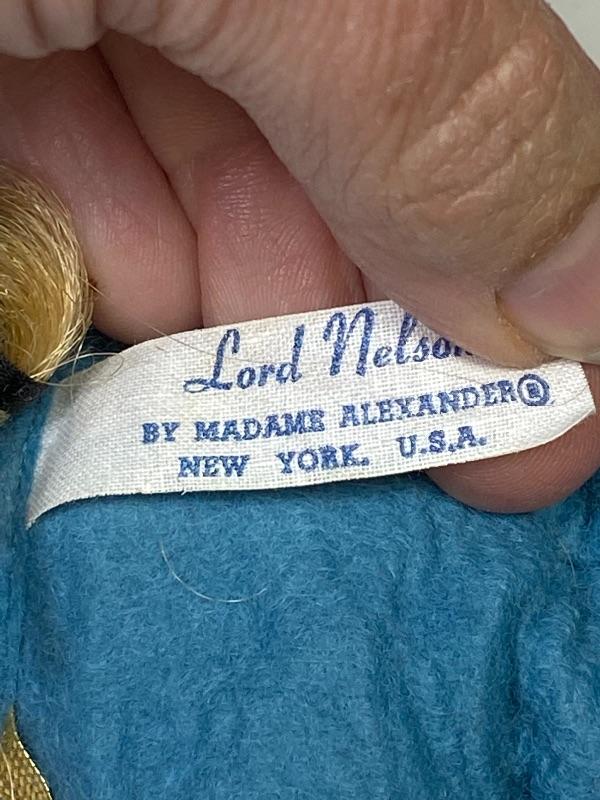 Vintage Madame Alexander "Lord Nelson" doll. Plastic doll with sleep eyes. Marked on back of head and outfit tag. There is a few black marks on the back of pants, maybe ink.