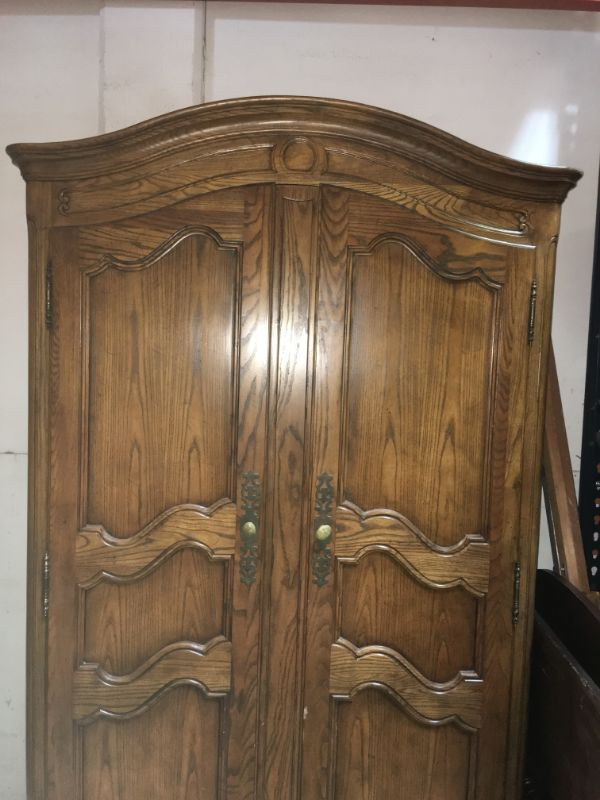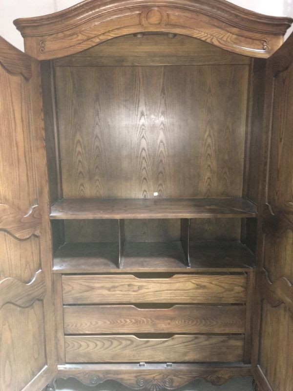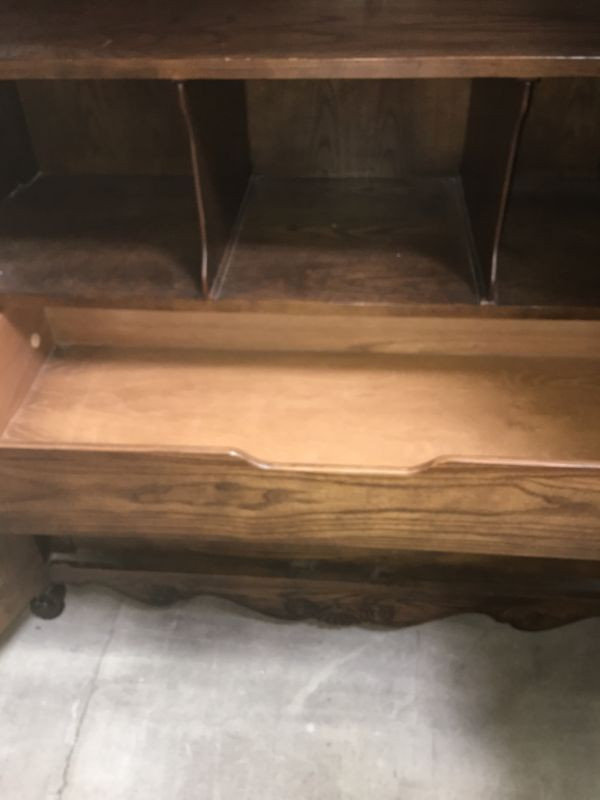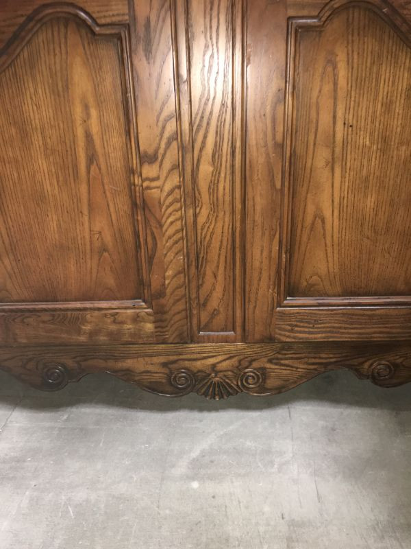 Vintage Made by BAKER Entertainment Center Oak with Carving