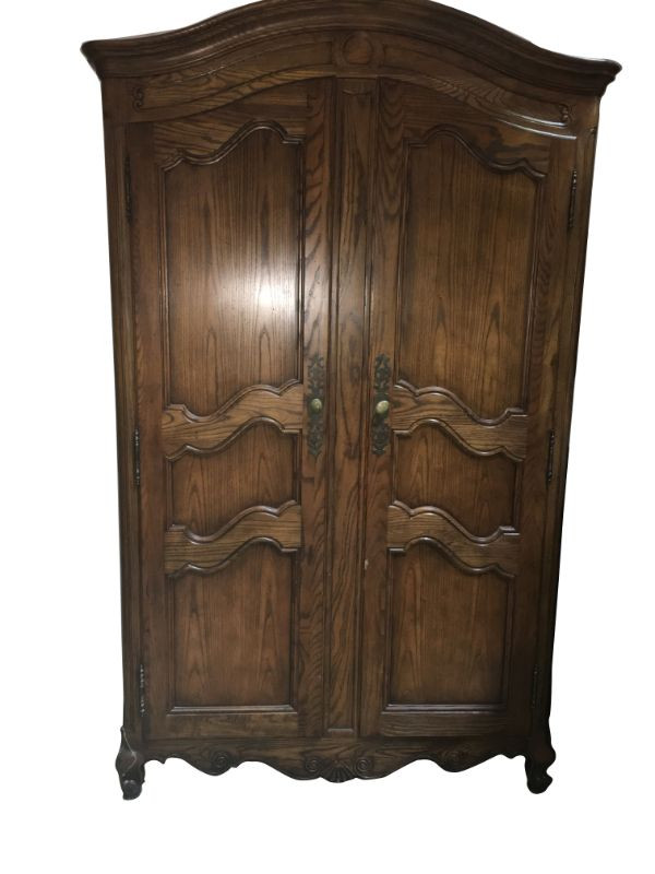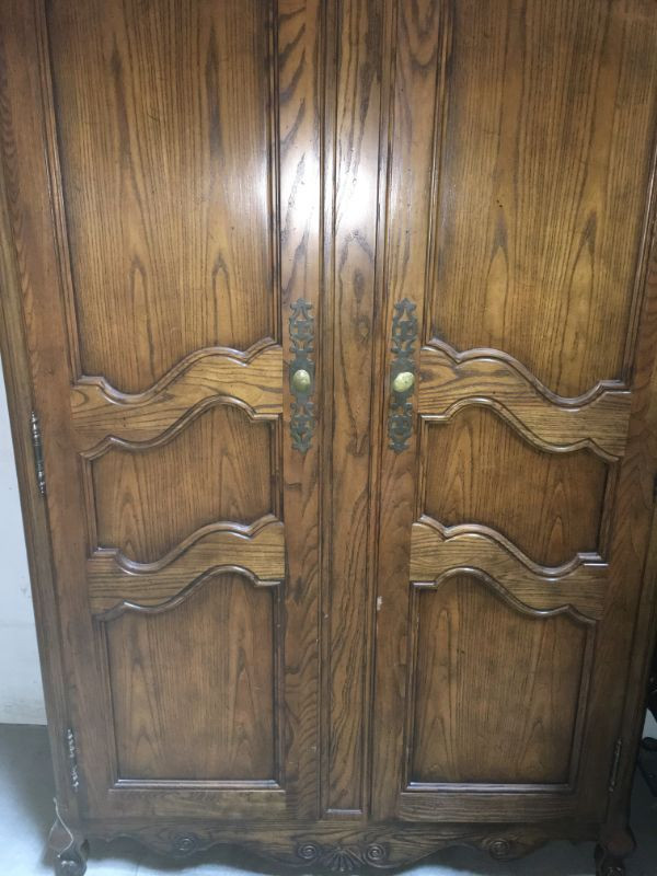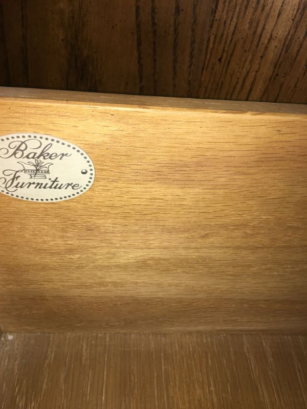 A great addition to your home! An oak entertainment center made by Baker in very good conditions. Measures 37.5" in width, 19.5" in depth and 29" in height. Please look carefully at the photos before bidding. Maybe few small scratches but hard to see.This item has a reserve.
