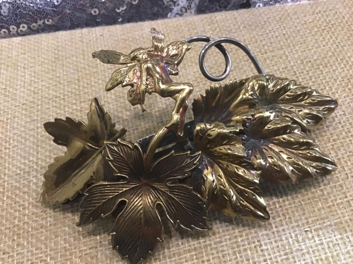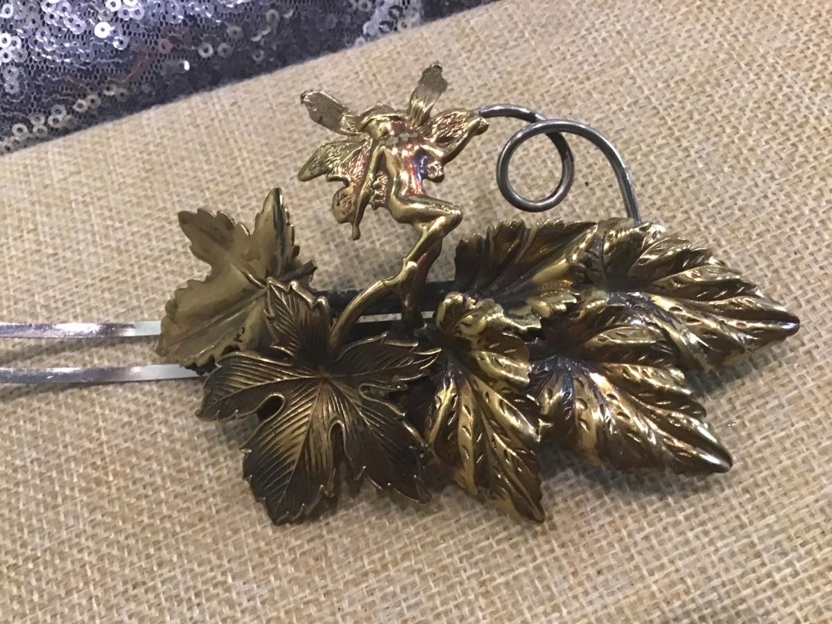Vintage Made In France Ornate Flowers Fairy Antique Gold Tone Hair Clip Barrette