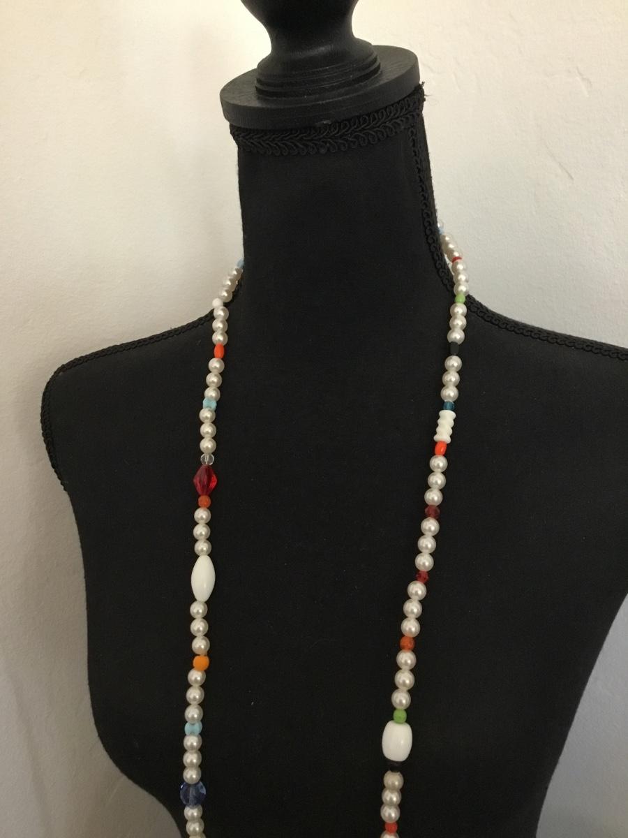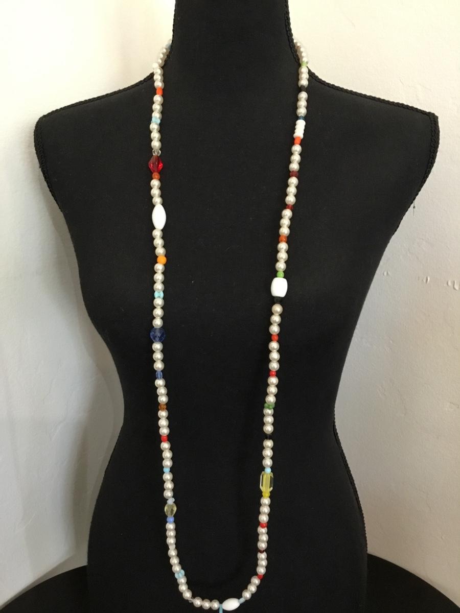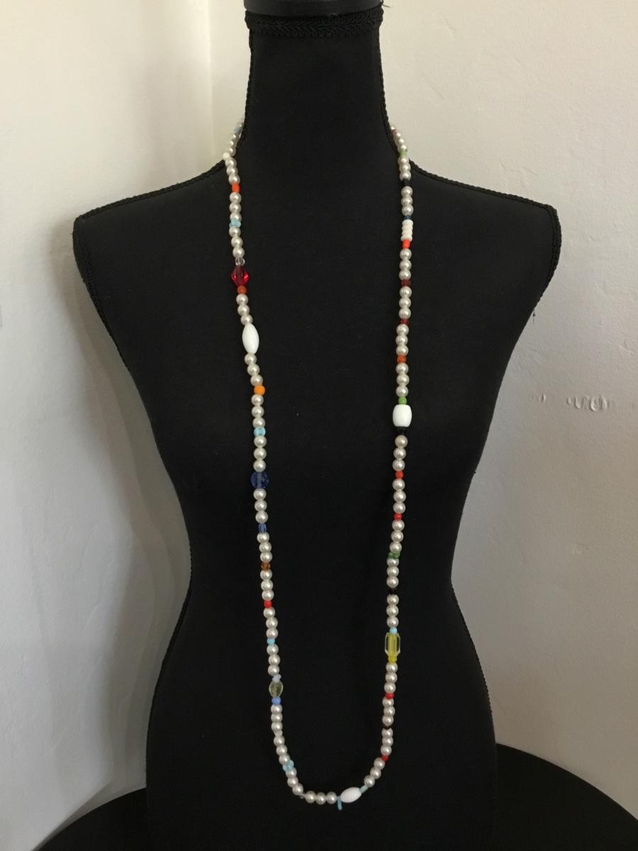 Vintage made in Germany, multicolored bead faux, pearl long necklace