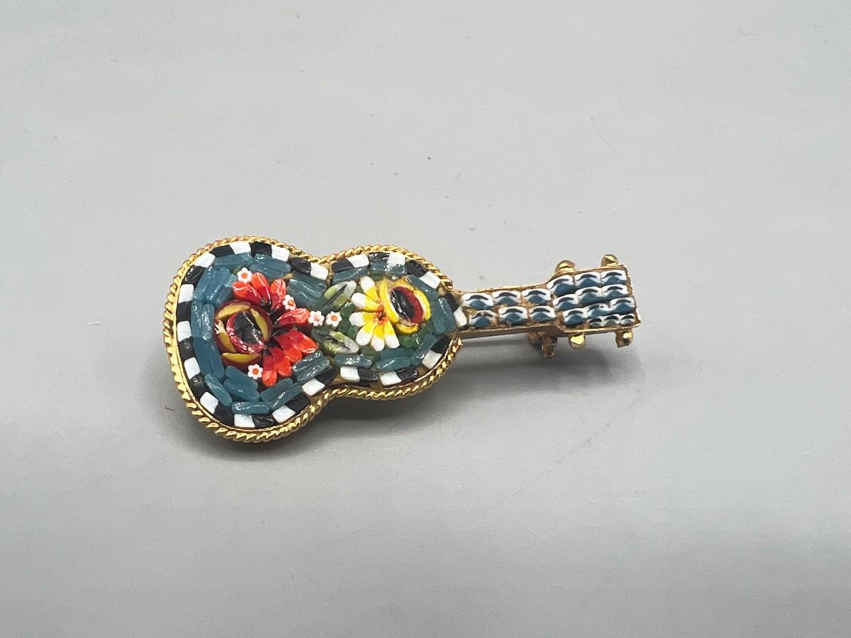 Vintage Made in Italy Colorful Beaded Acoustic Guitar Pin