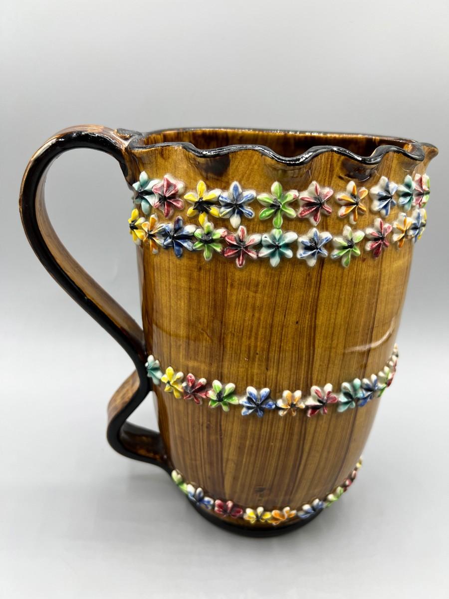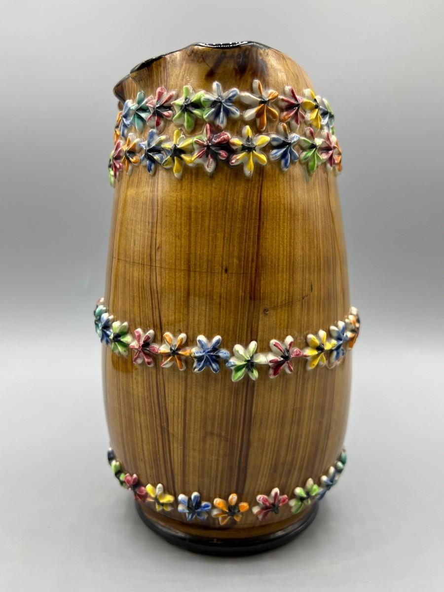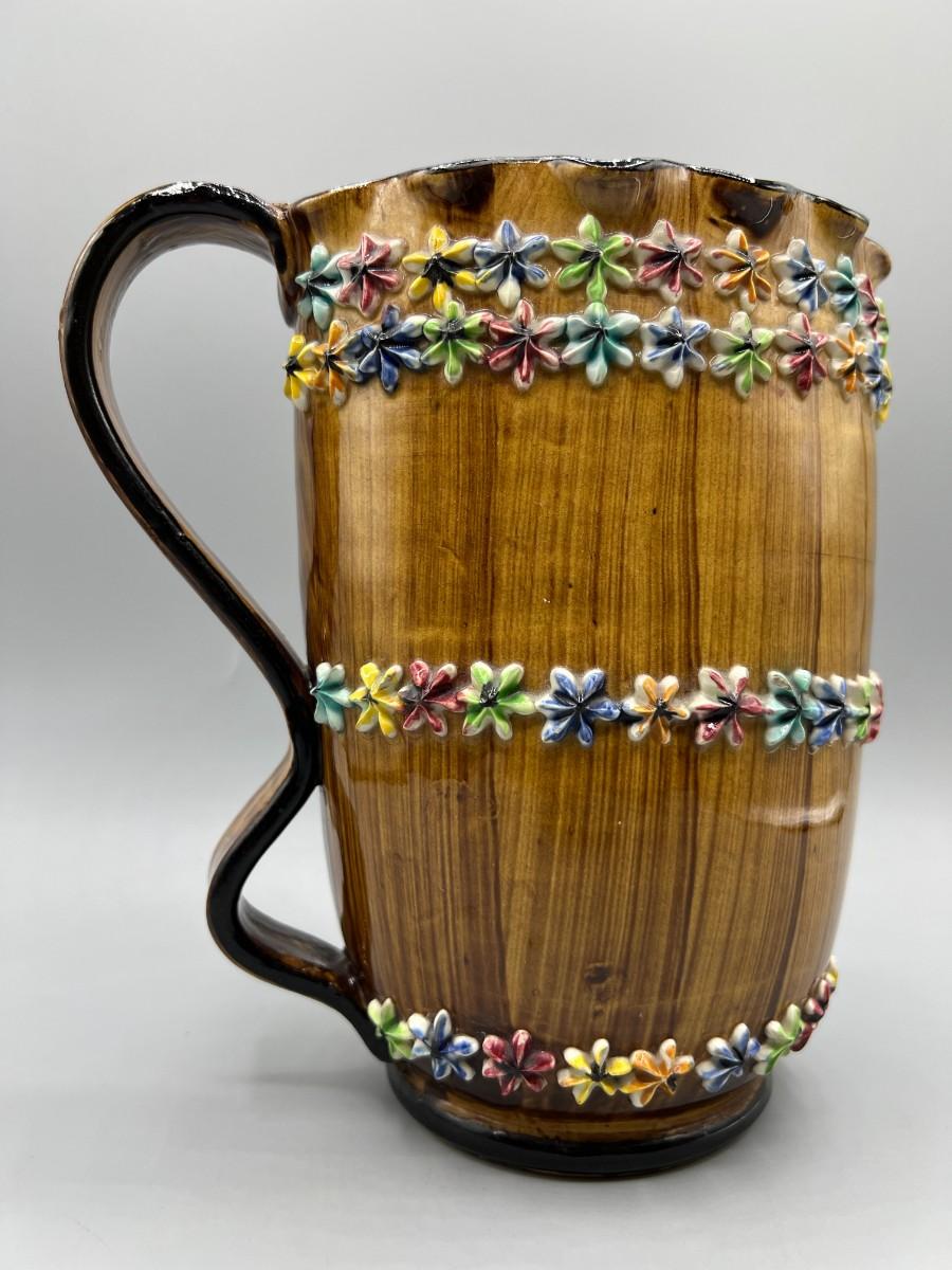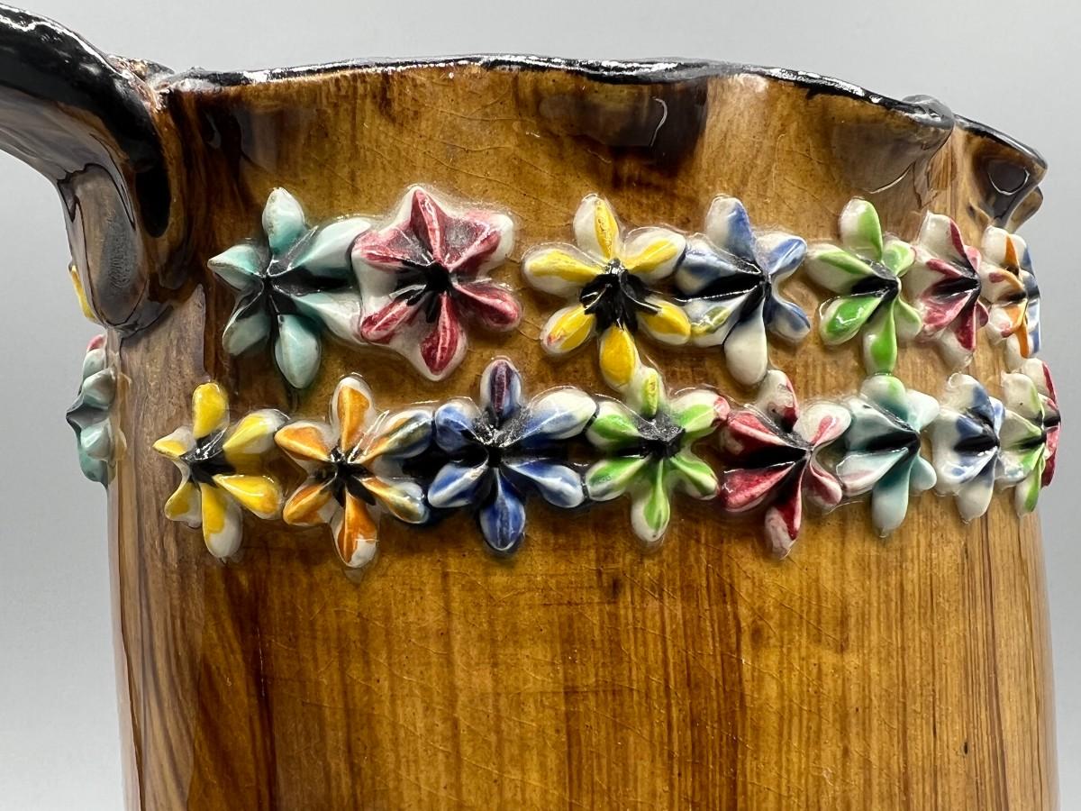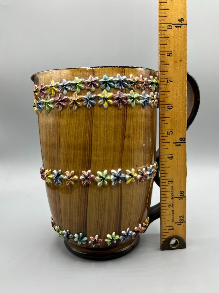 Vintage Made in Italy Montebello Ceramic Wood Grain Pitcher with Decorative Flowers