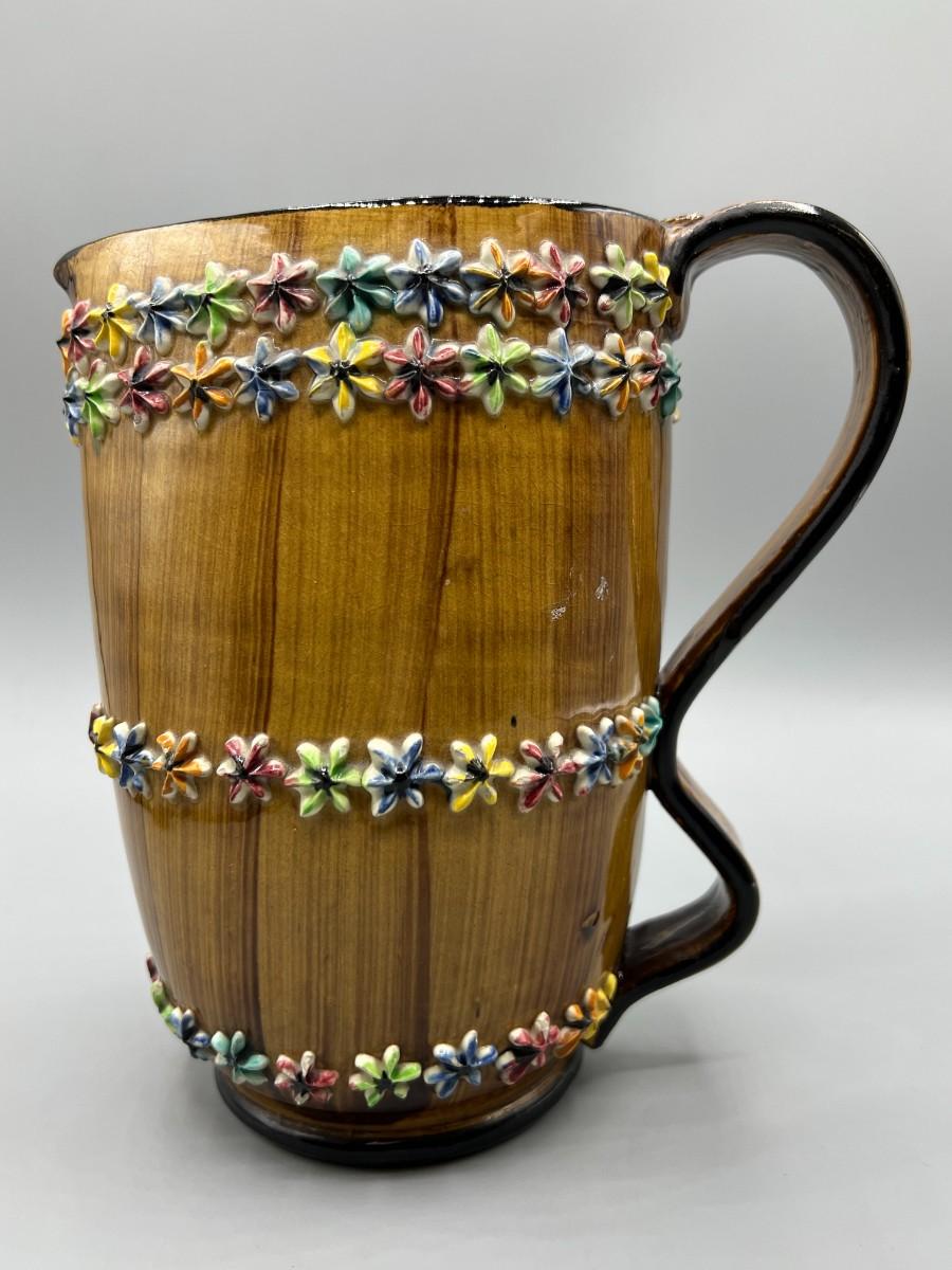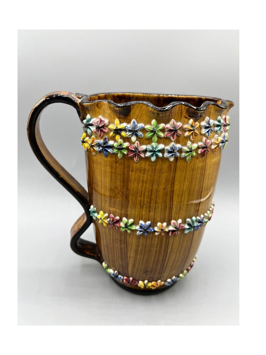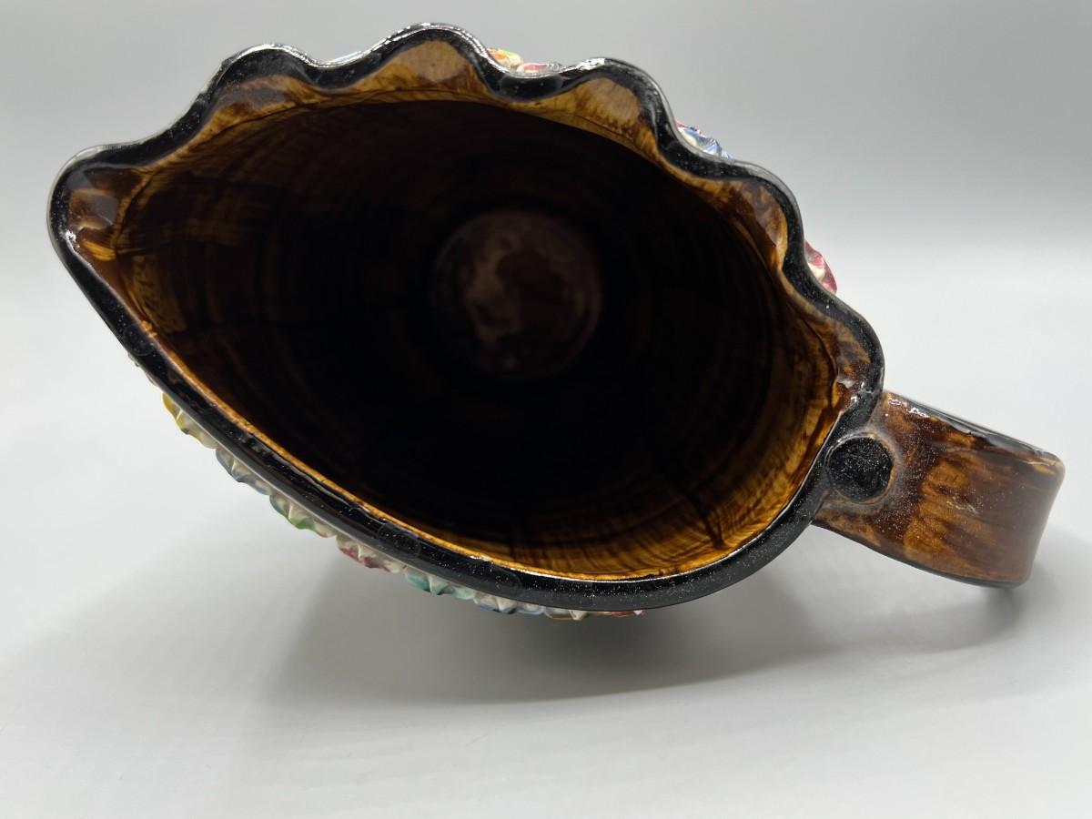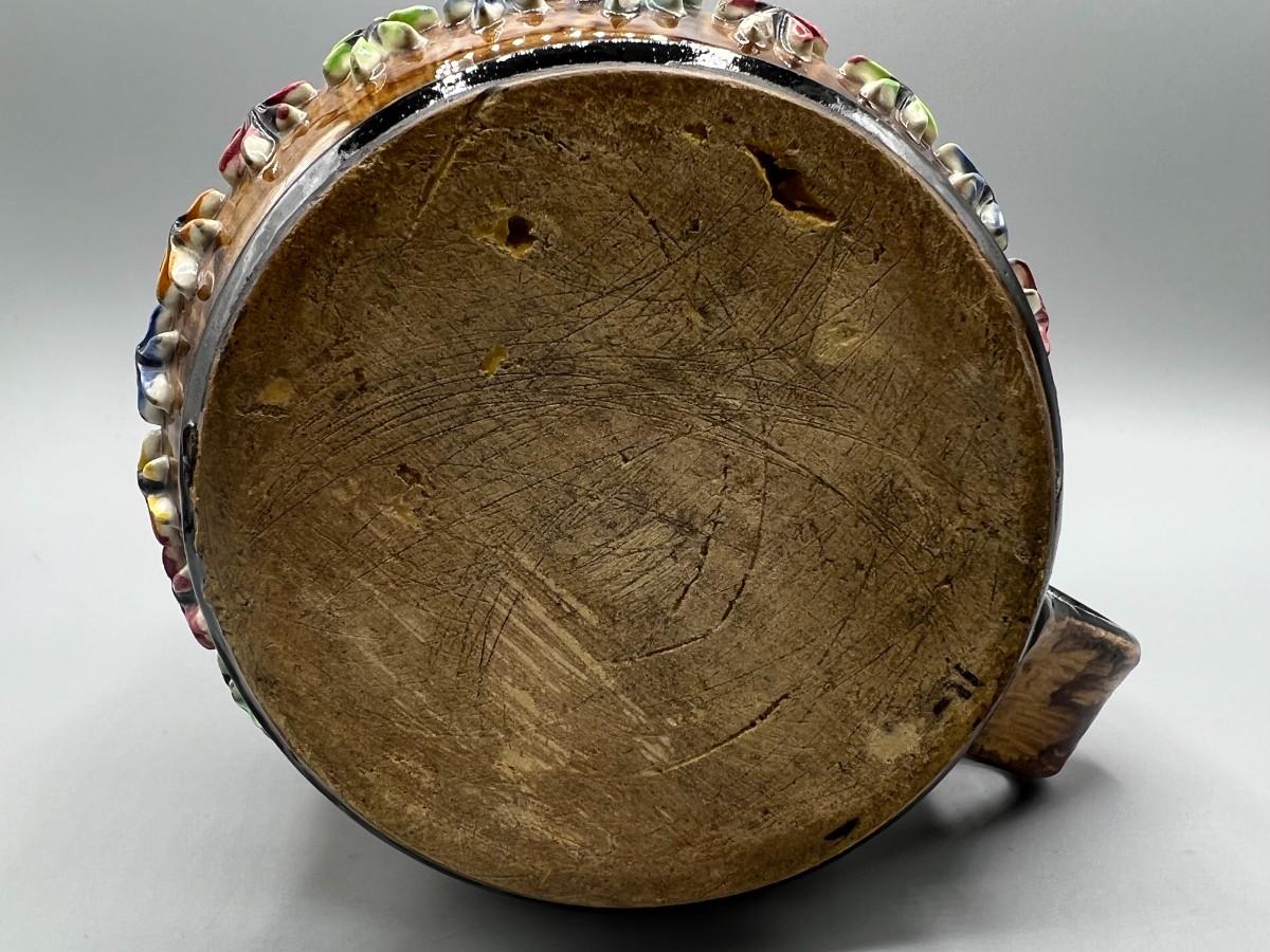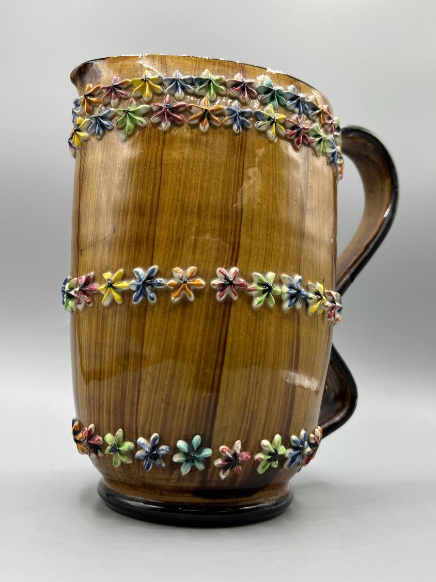 Vintage Made in Italy Montebello Ceramic Wood Grain Pitcher with Decorative Flowers