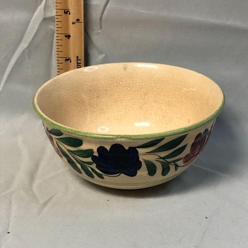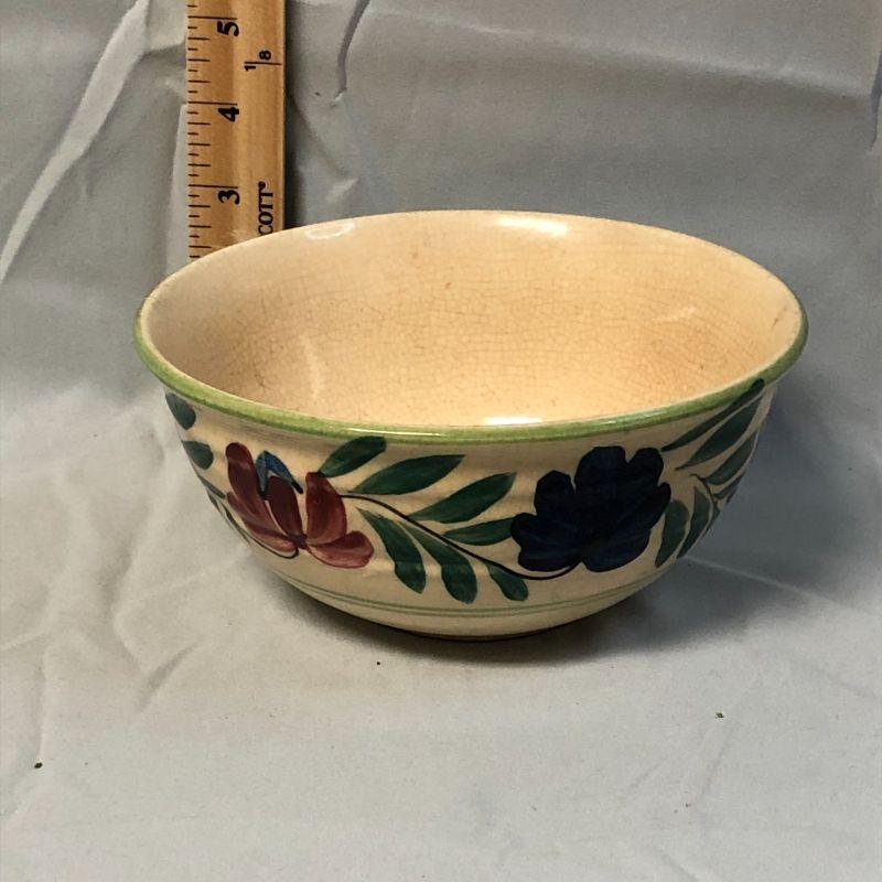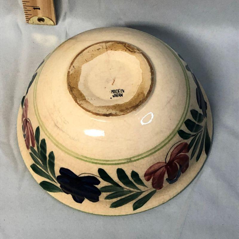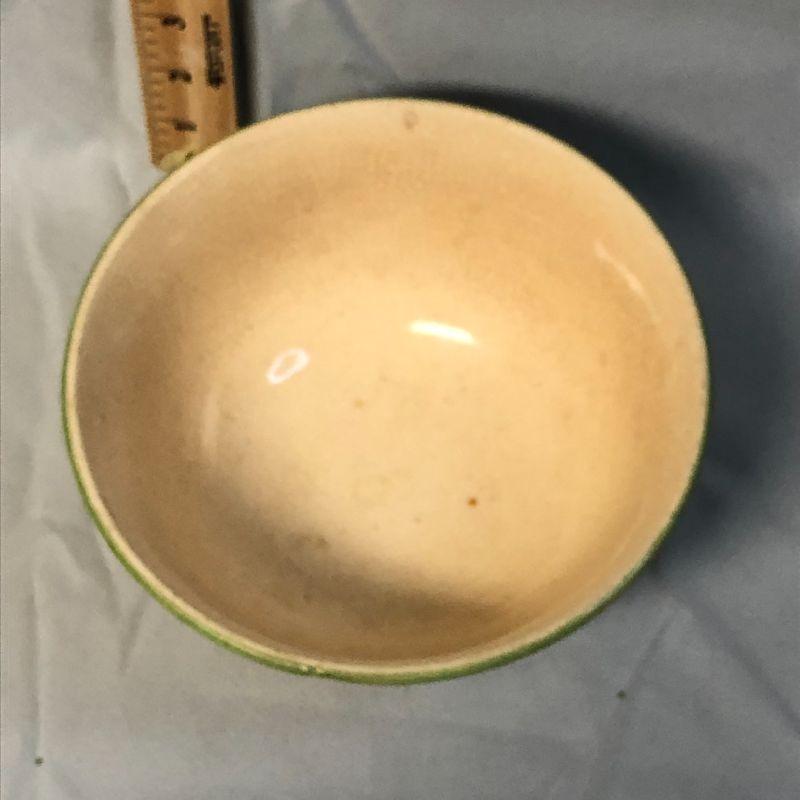 The paint is in excellent condition and other than extensive crazing, this bowl is in excellent condition. It is about 7" in diameter.
