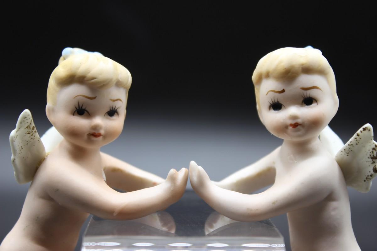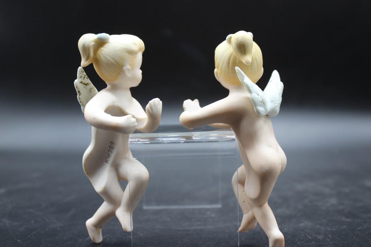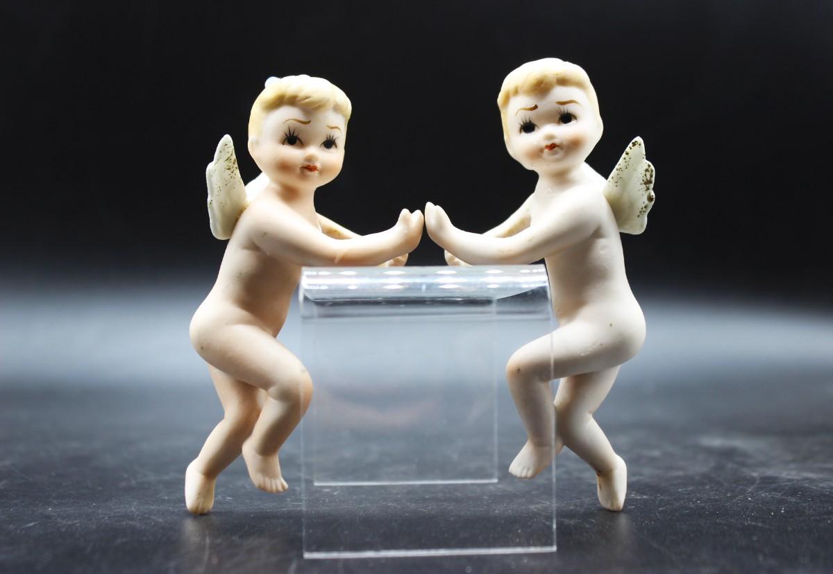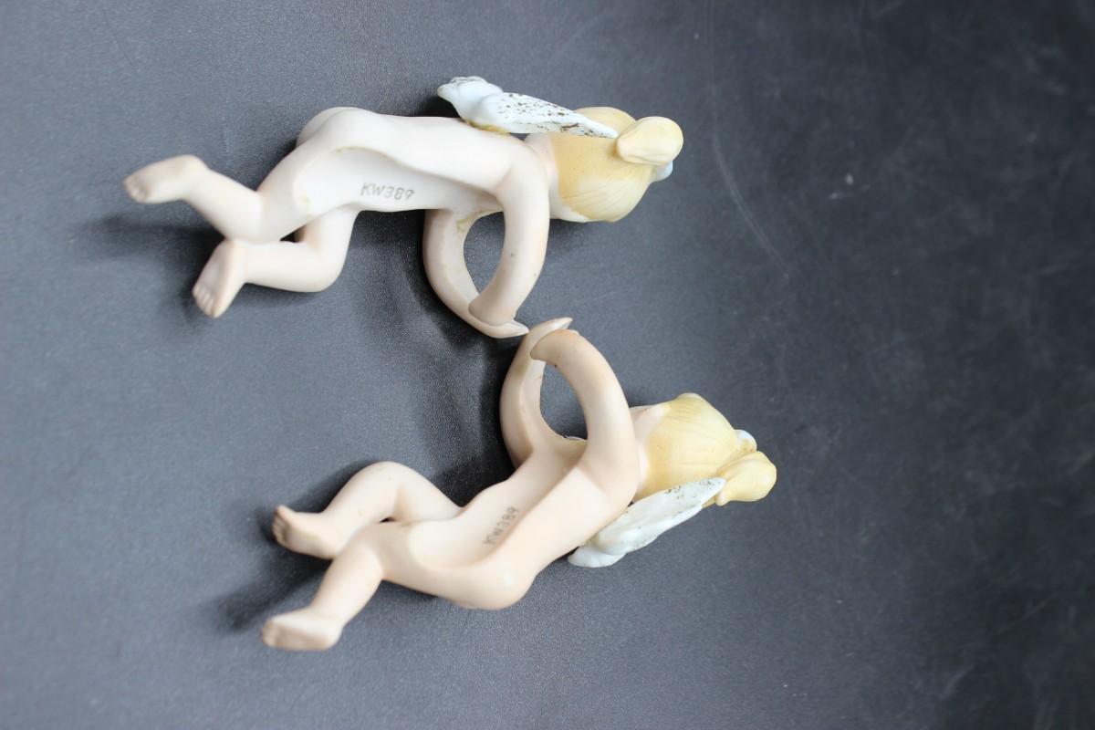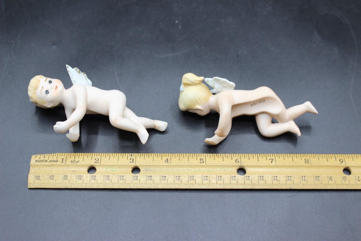 Vintage Made in Japan Lefton Bisque Ceramic Angel Cherub Candle Huggers Climbers, there is some vintage wear, but there is no significant chips or cracks to either of the pieces and is in good vintage condition. Check pictures for more details and for sizing.