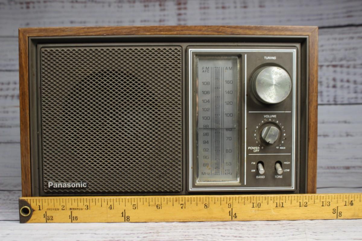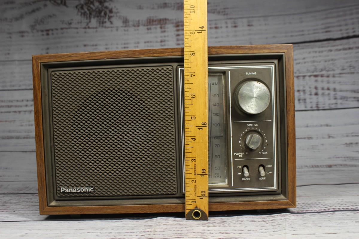 Vintage Made in Japan Panasonic AM/FM Radio, there are no significant chips or cracks to the body and is in good vintage condition. Check pictures for more details and for sizing, has been tested and powers on. There is static white noise coming from the speaker that can be adjusted with the volume controls.